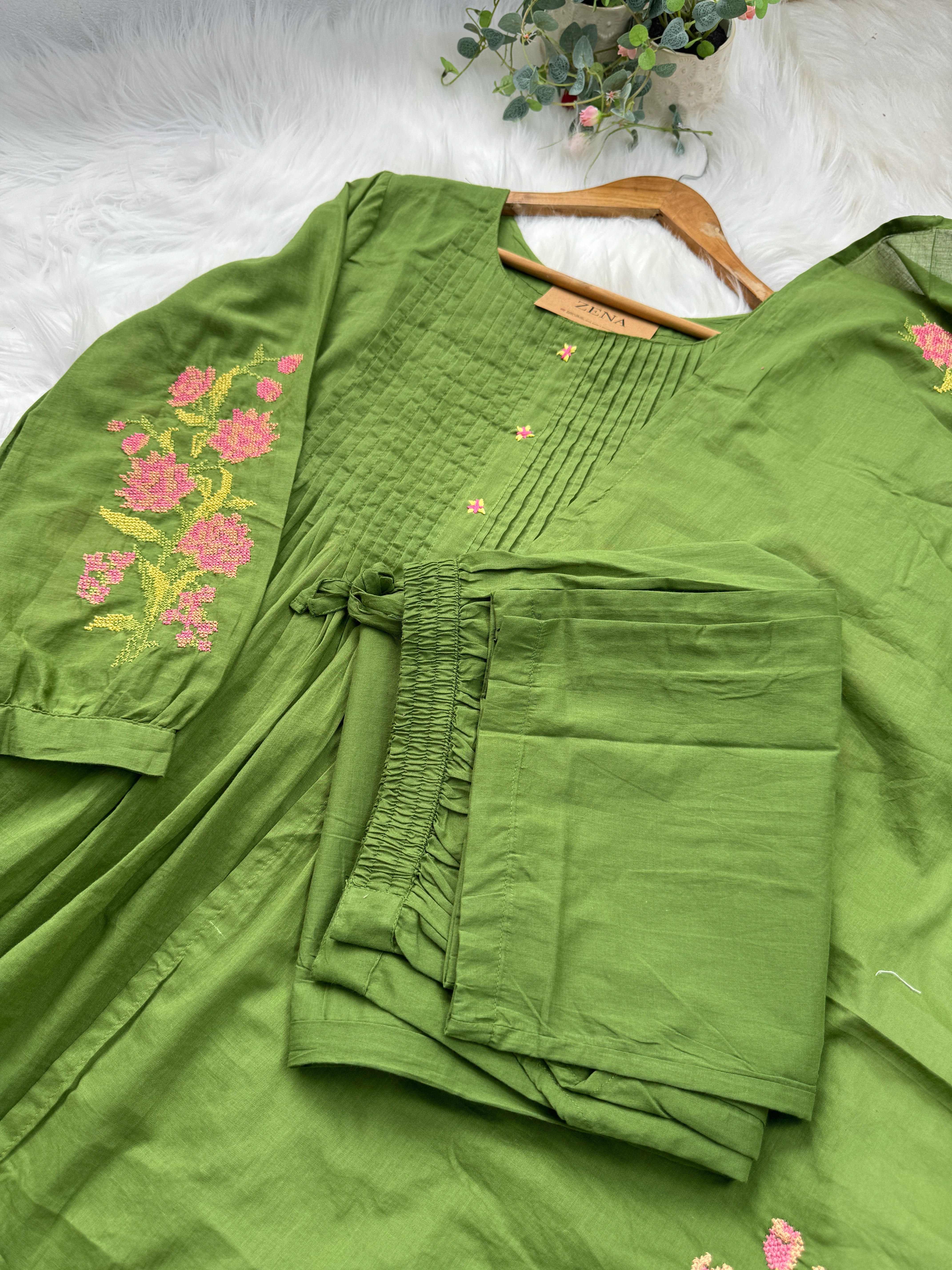 Experience comfort blended with elegance in this Pure Mul Cotton Embroidered Anarkali Set. The soft, breathable mul cotton fabric paired with beautiful embroidery makes it a perfect choice for casual functions, festive wear, and all-day comfort styling.