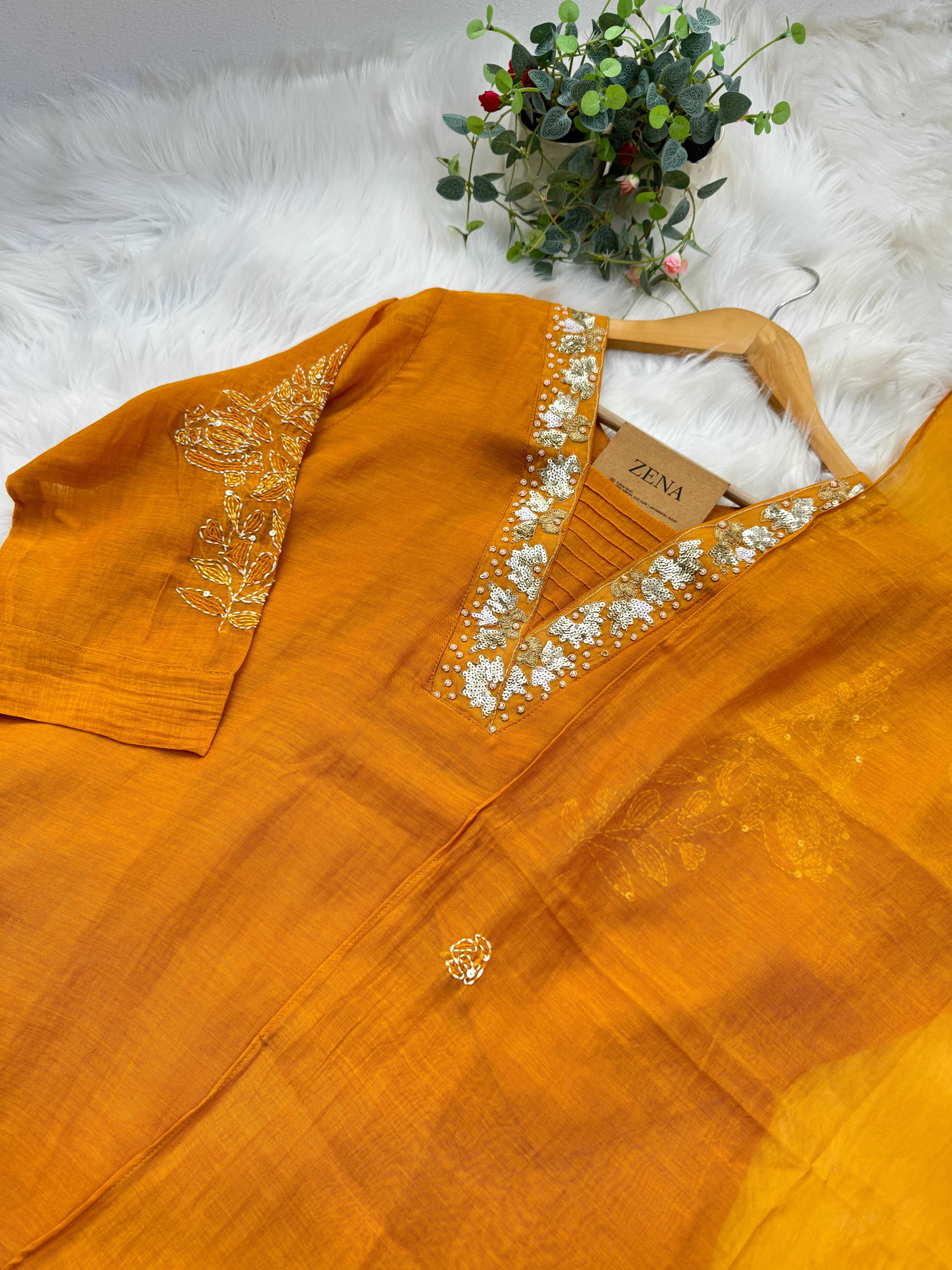 - Mul Chanderi silk / mustard yellow / XL - ₹2,900.00