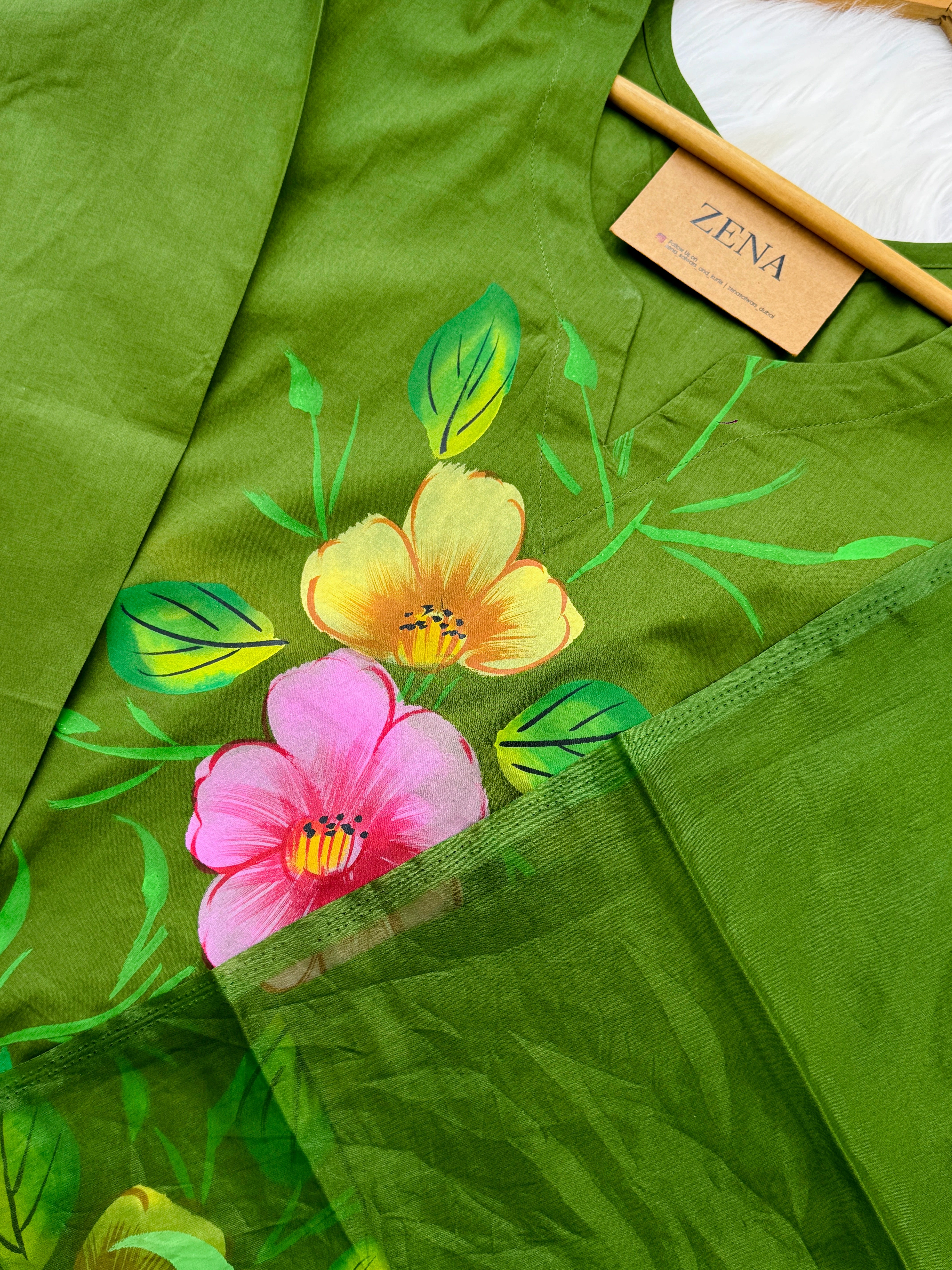 Pure Cotton Hand-Painted Slitted Kurti Set