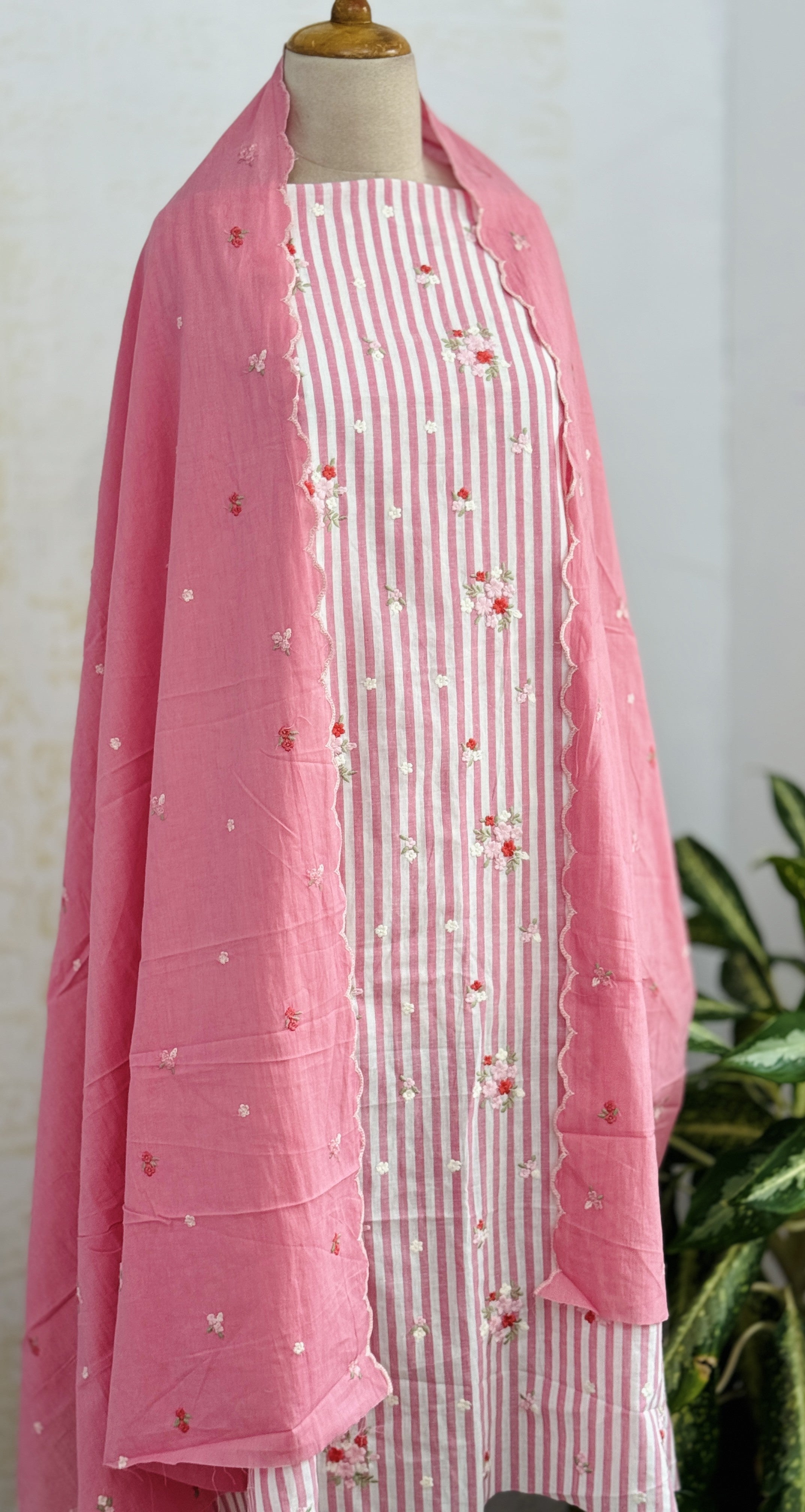 Create your perfect everyday ethnic look with this Unstitched Pure Cotton Kurti Set, thoughtfully designed for comfort and elegance. The pure cotton top with delicate butta work, paired with a scalloped cotton dupatta and matching pant fabric, makes this set ideal for custom tailoring with a graceful finish.
