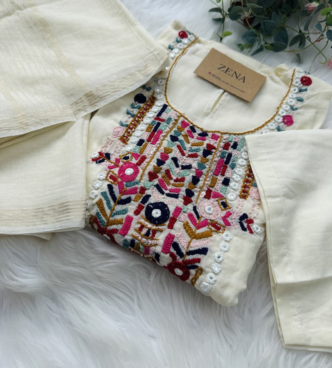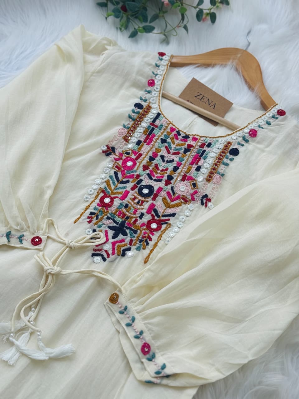 Enhance your ethnic wardrobe with our Premium Mul Chanderi Hand Work Suit, a beautiful blend of comfort, luxury, and craftsmanship. Made from high-quality Mul Chanderi fabric, it features intricate hand work detailing that adds a touch of traditional elegance. The fabric’s natural luster and lightweight texture make it ideal for all-day wear, while the elegant design ensures you stand out at any occasion.