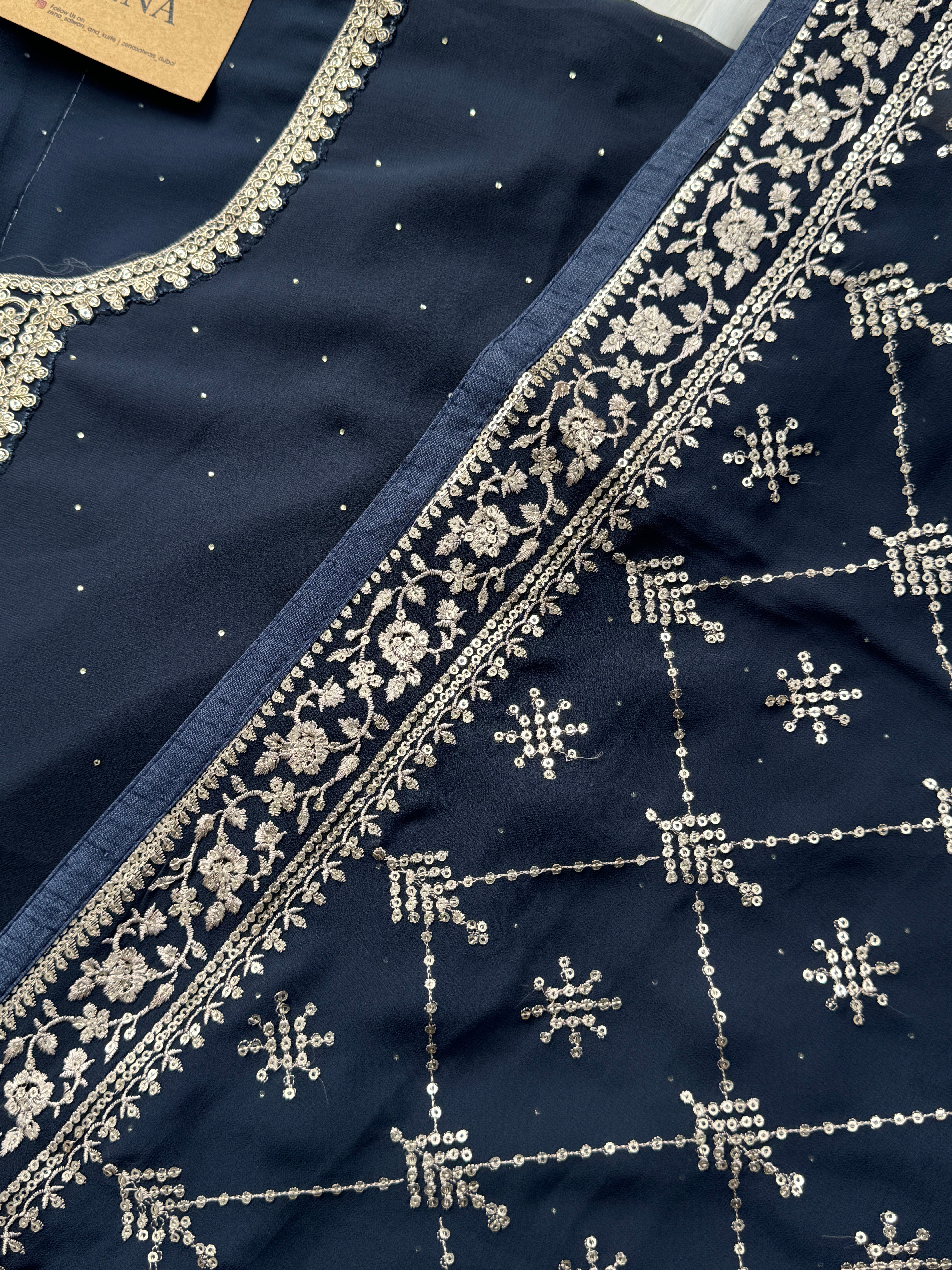 Drape yourself in sophistication with our Pure Chiffon Unstitched Embroidered Material , a stunning ensemble crafted for timeless elegance. Made from premium pure chiffon fabric, this set offers a lightweight, flowy texture that feels luxurious and graceful.