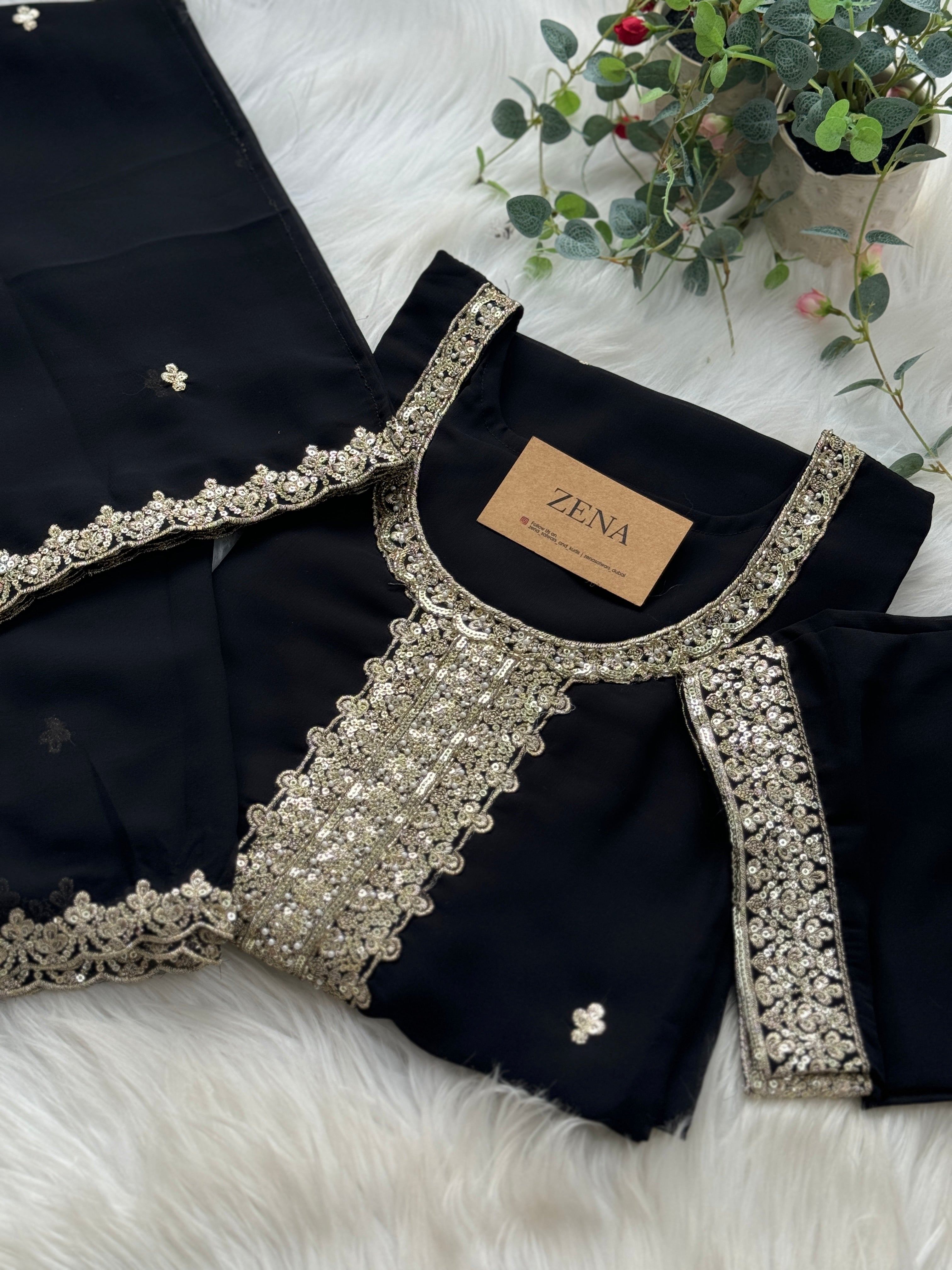 Turn heads at every occasion with our Pure Georgette Embroidered Party Wear Kurti Set, designed to add glamour and grace to your festive and evening wardrobe. Crafted from premium pure georgette fabric, this ensemble offers a luxurious drape, lightweight comfort, and effortless sophistication.