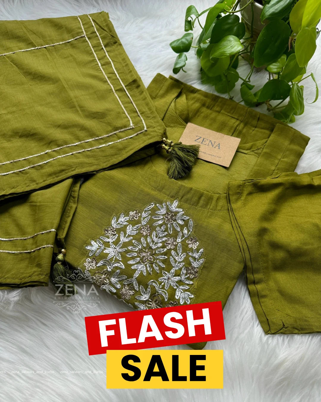 Pure Mul Chanderi Hand-Embroidered A-Line Kurti Set