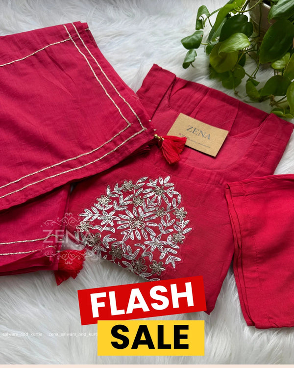 - Red / Mul Chanderi silk / L - ₹2,900.00
