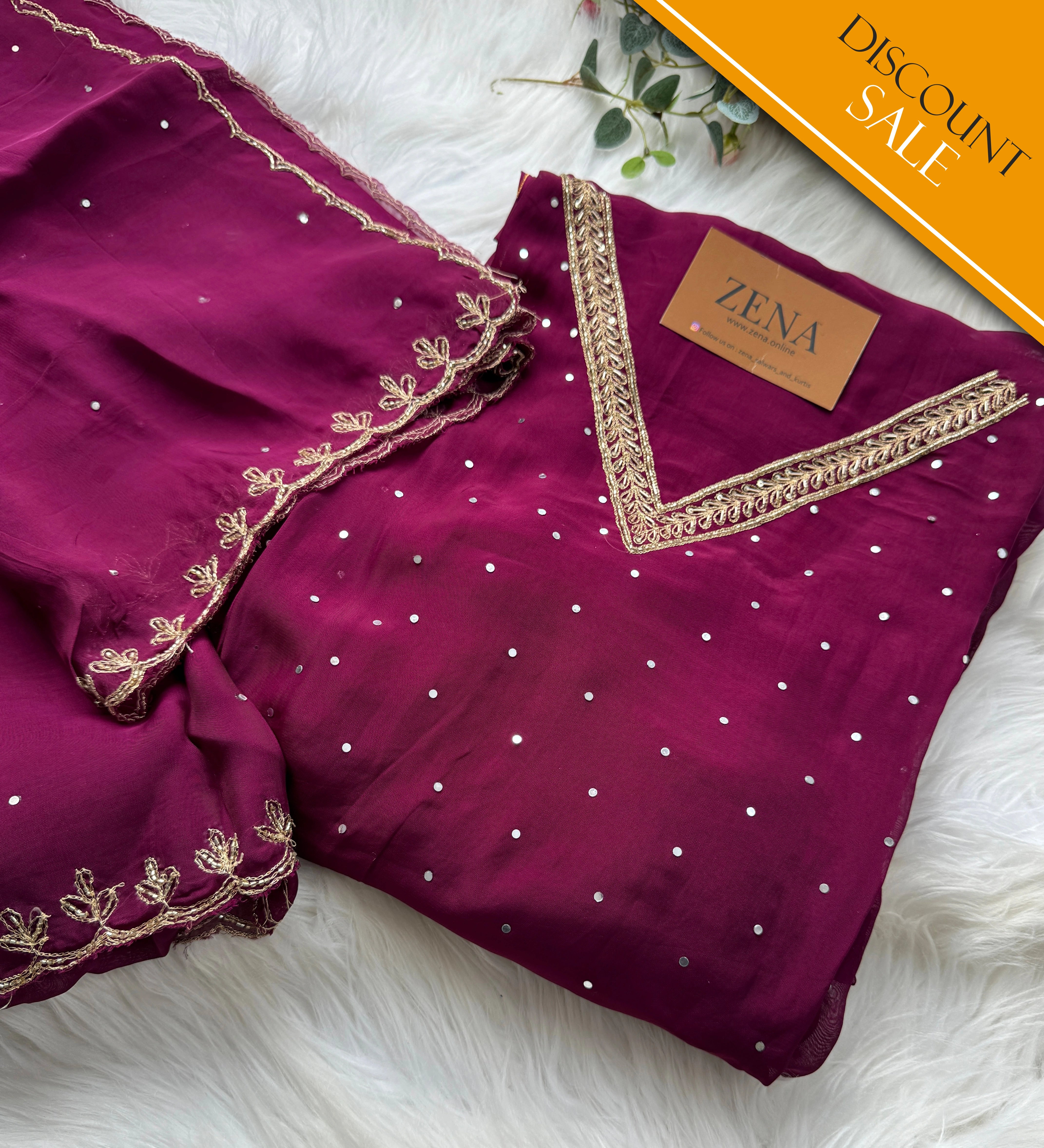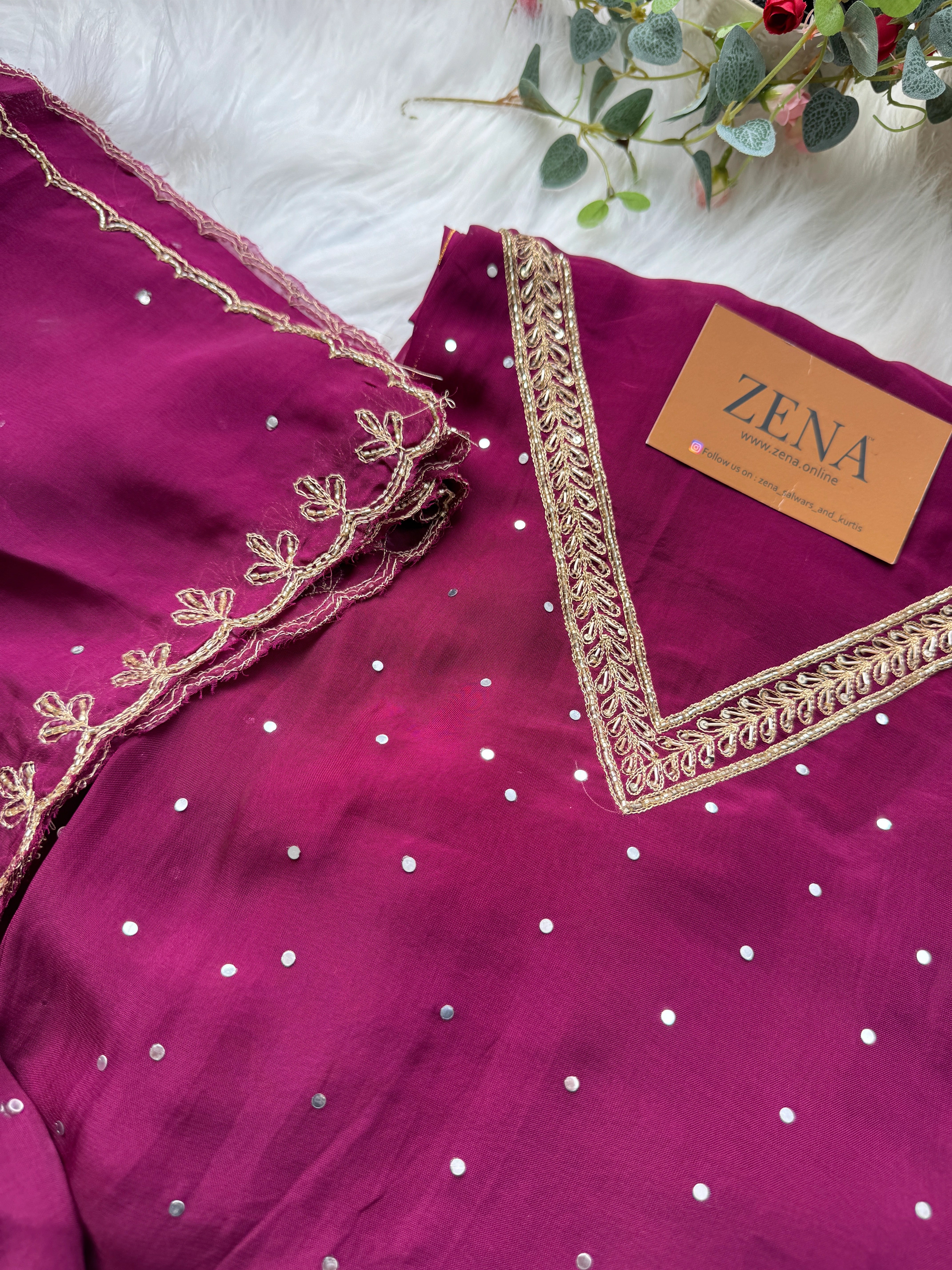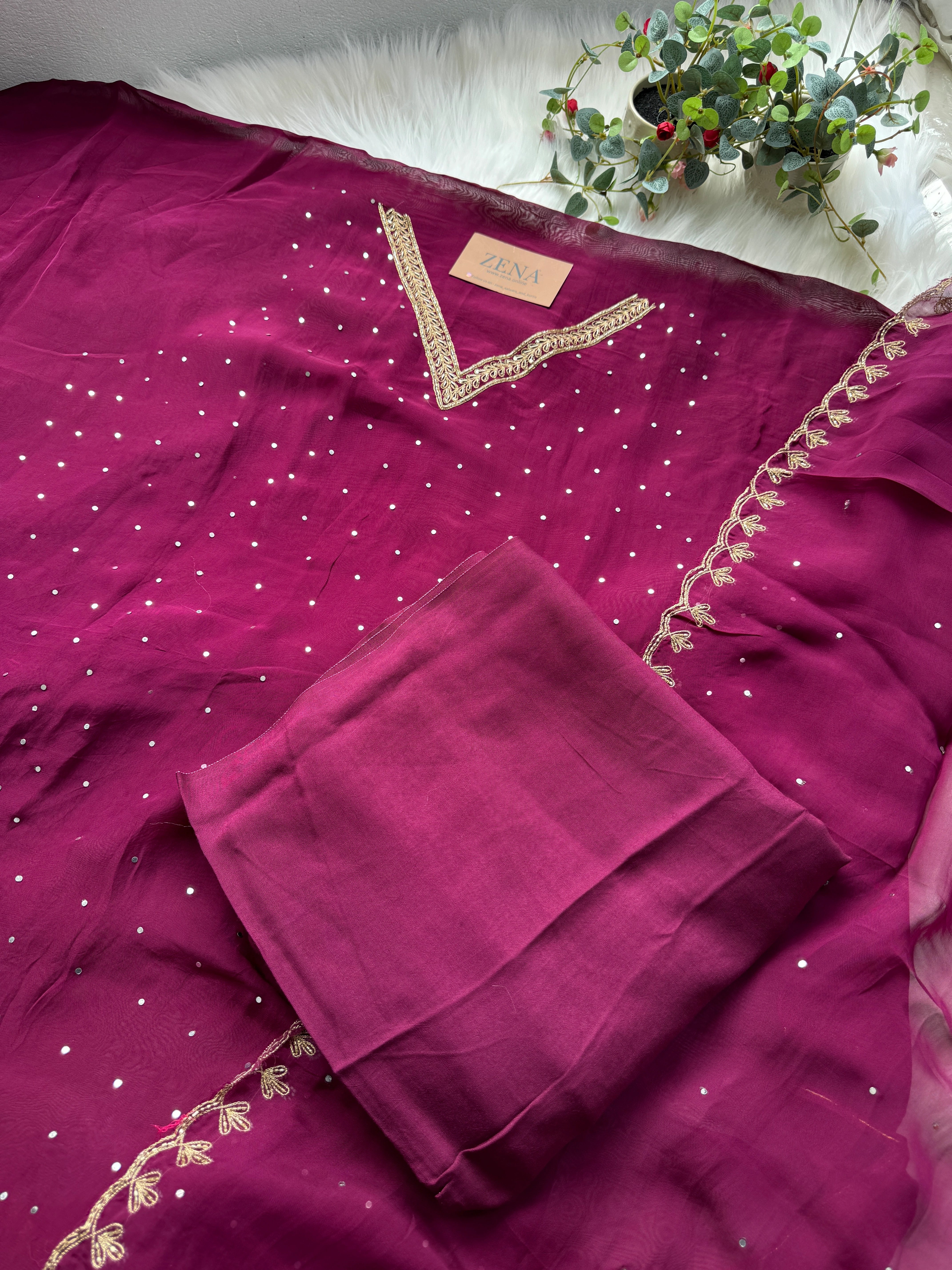 Make a statement of elegance with this Pure Organza Hand Work Party Wear Suit, crafted to add sophistication to your festive and special occasions. The delicate handwork and luxurious fabric make it a perfect choice for graceful styling.