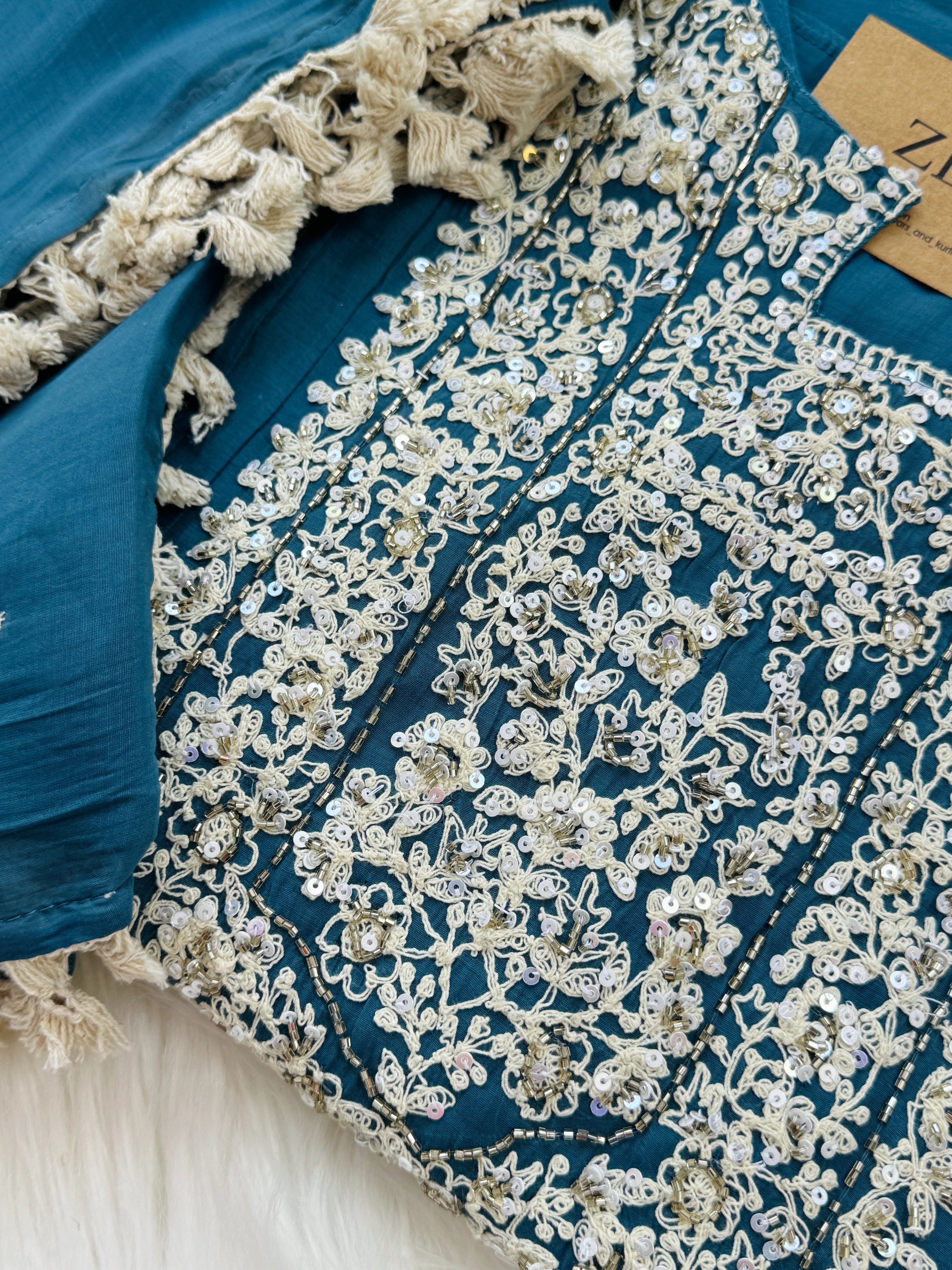 ✨ Mul Chanderi Embroidered Party Wear Kurti Set ✨