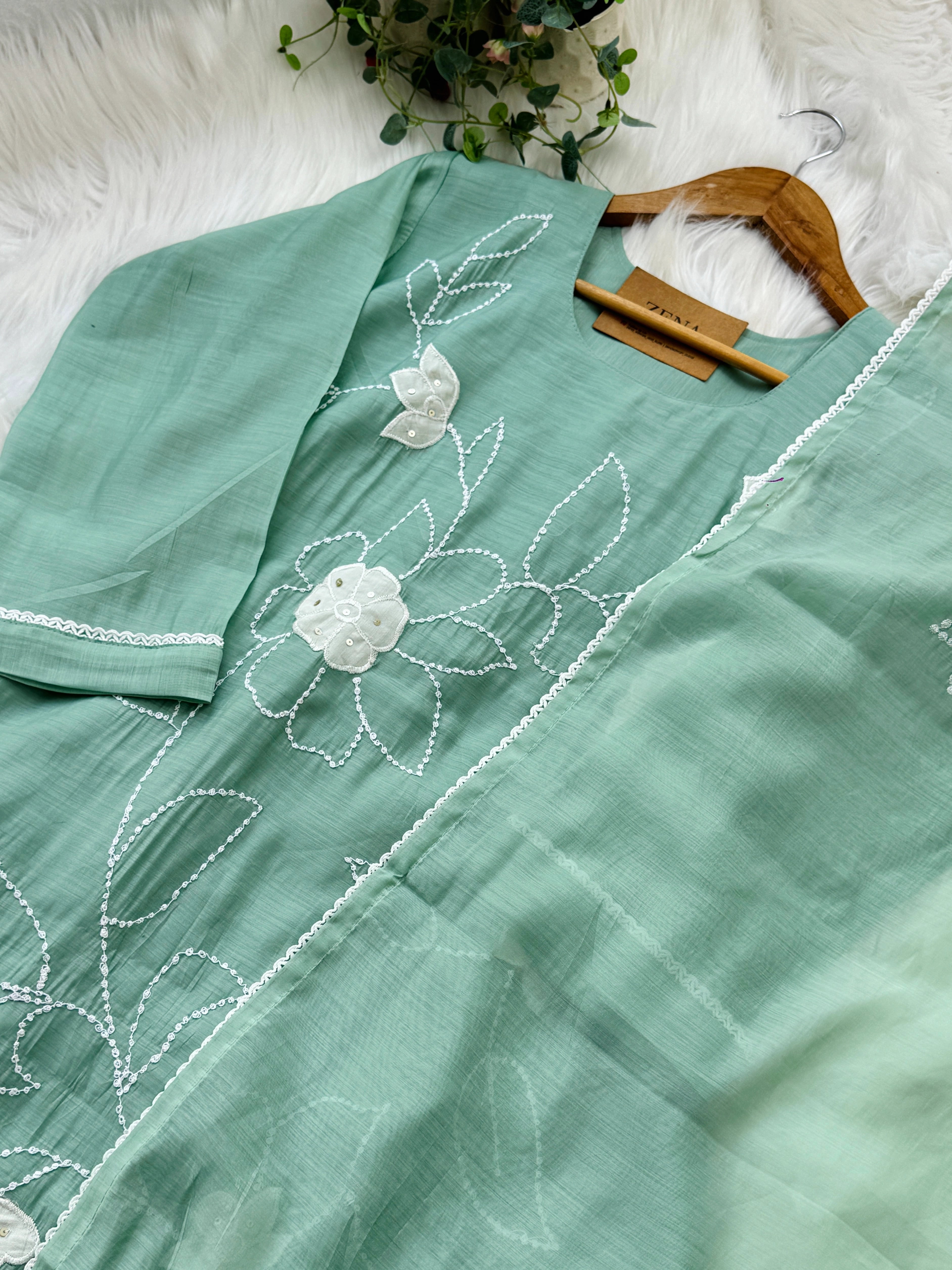 ✨ Premium Mul Chanderi Embroidered Kurti Set ✨ – Zena