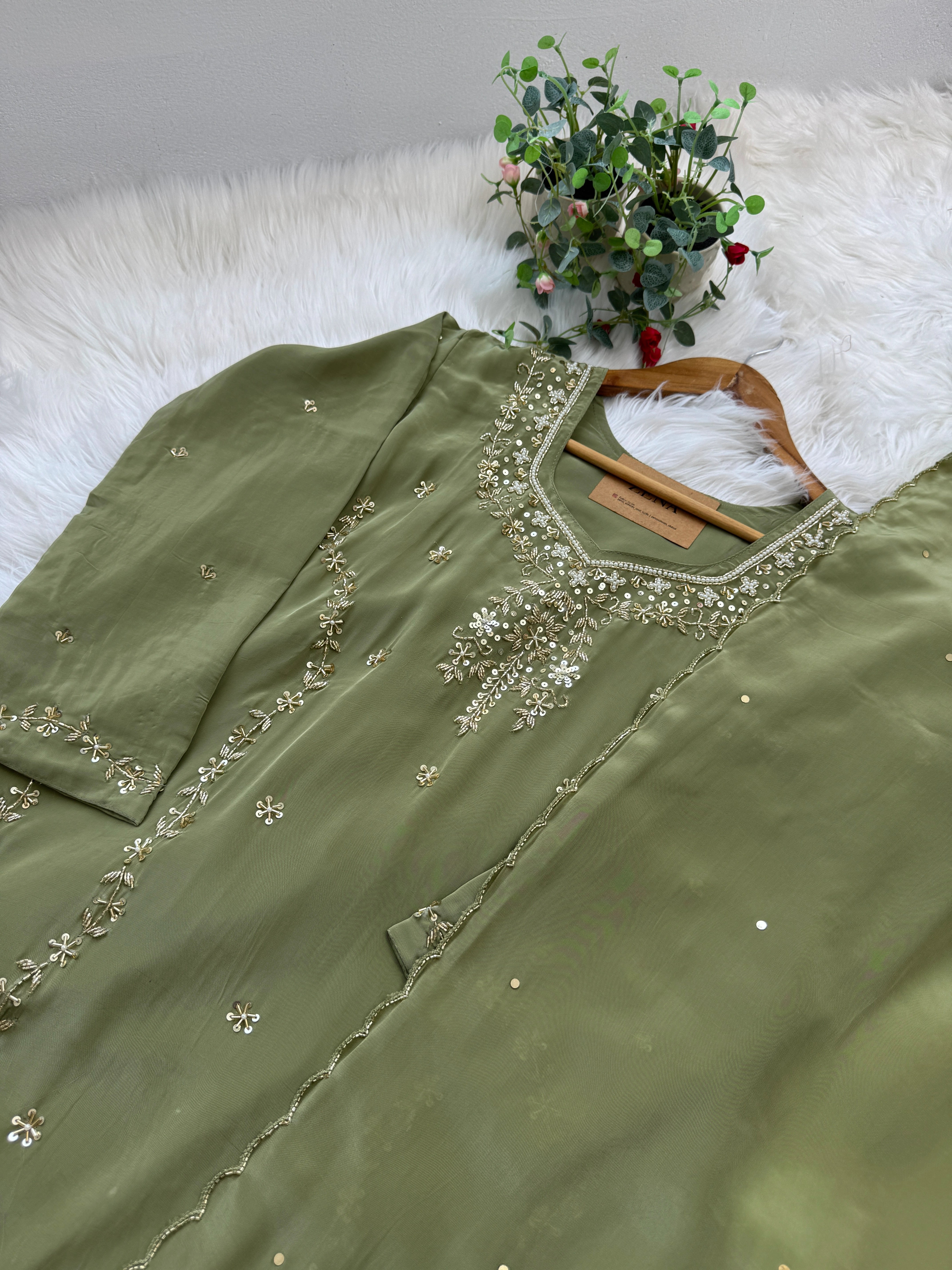 Make a statement of elegance with this exquisite Premium Pure Silk Handwork Party Wear Suit. Crafted from rich pure silk and adorned with intricate handwork, this outfit radiates sophistication, making it perfect for grand occasions and festive celebrations.