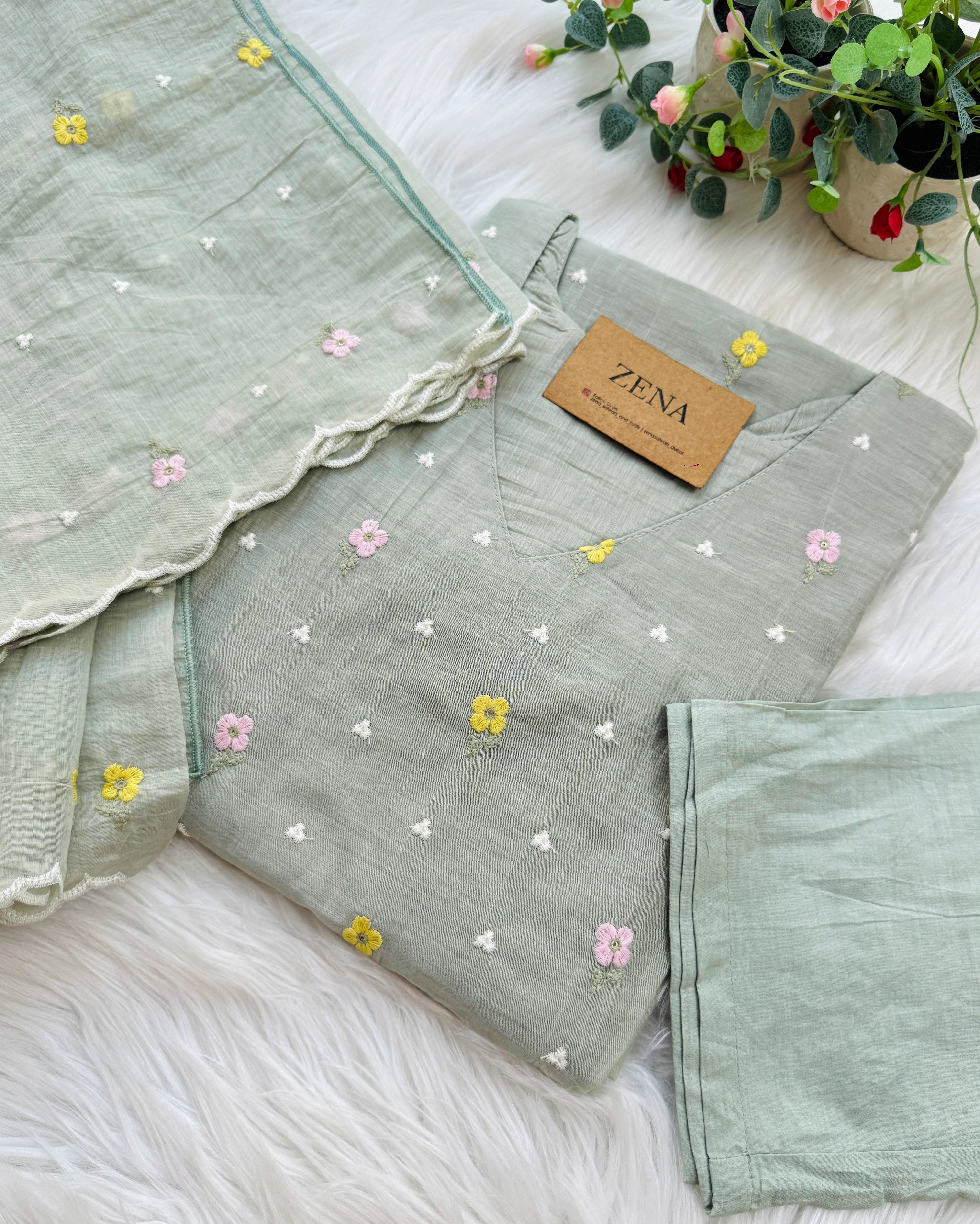Add effortless elegance to your ethnic wardrobe with this beautiful Pure Mul Chanderi Embroidered Kurti Set. Crafted from lightweight mul chanderi fabric and enhanced with fine embroidery, this set offers a graceful silhouette with all-day comfort.