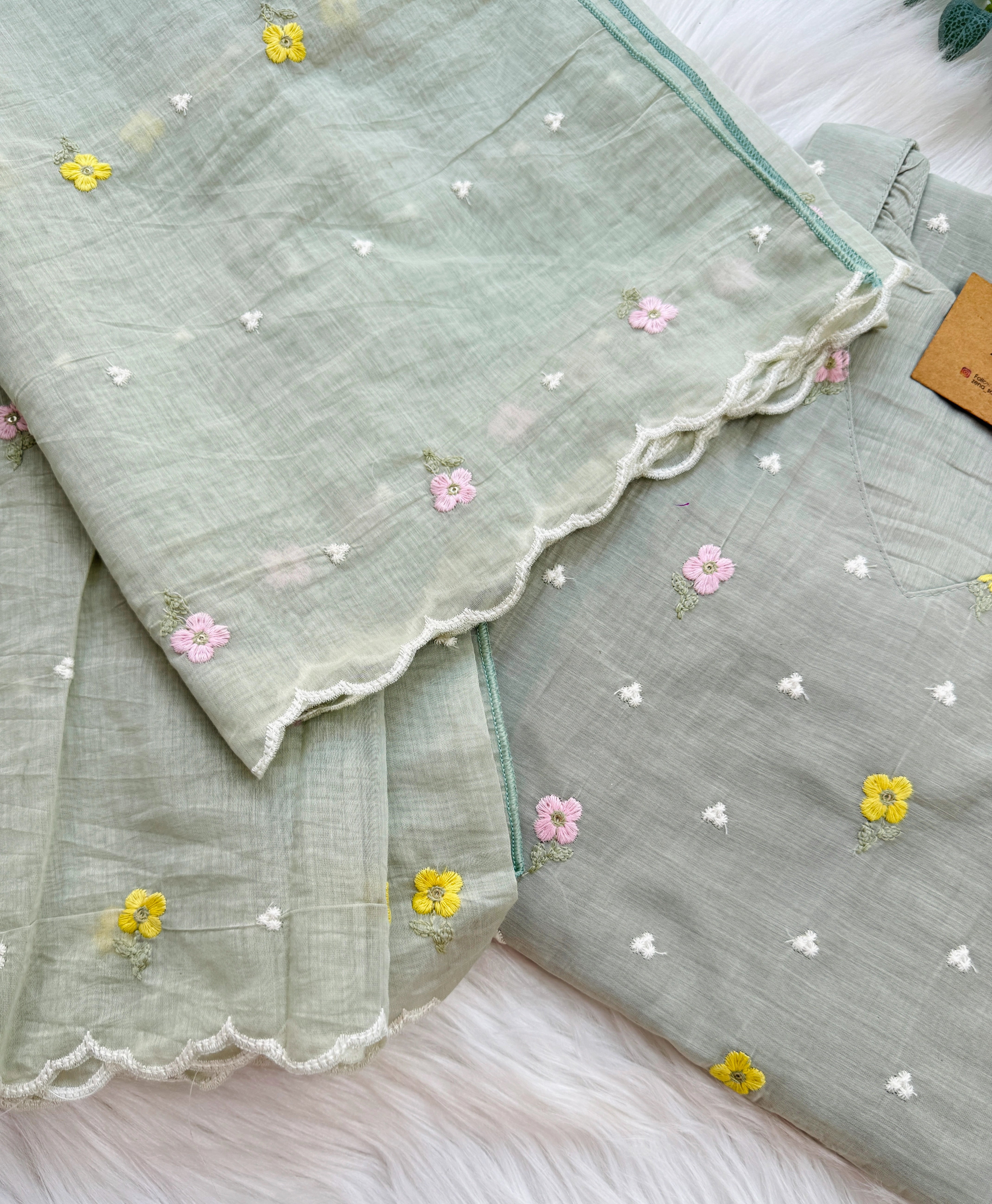 ✨ Pure Mul Chanderi Embroidered Kurti Set ✨