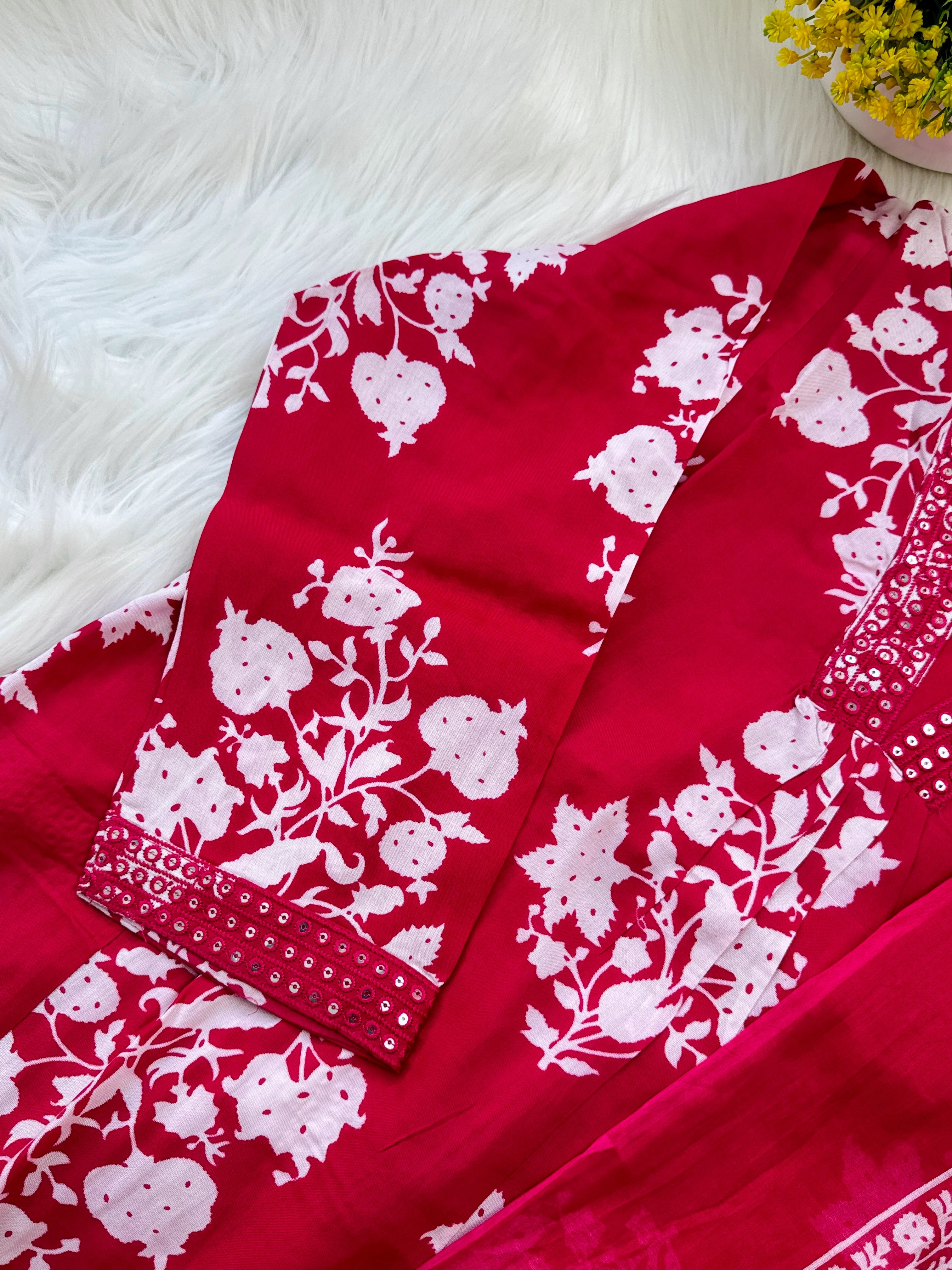 • Kurti & Bottom: Made from 100% premium pure cotton, known for its softness, breathability, and durability.