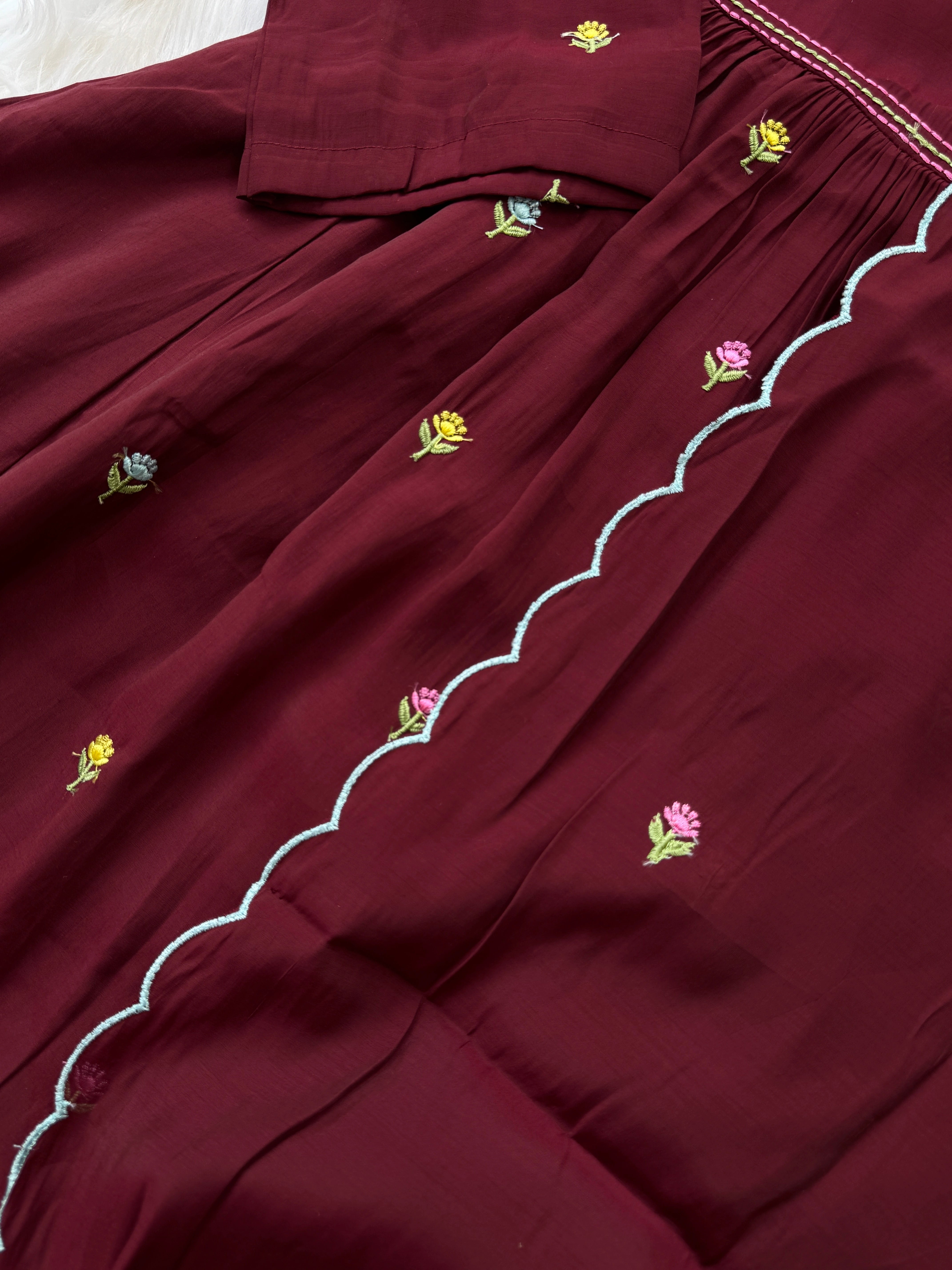 - Mul Chanderi silk / M / Maroon - ₹2,500.00