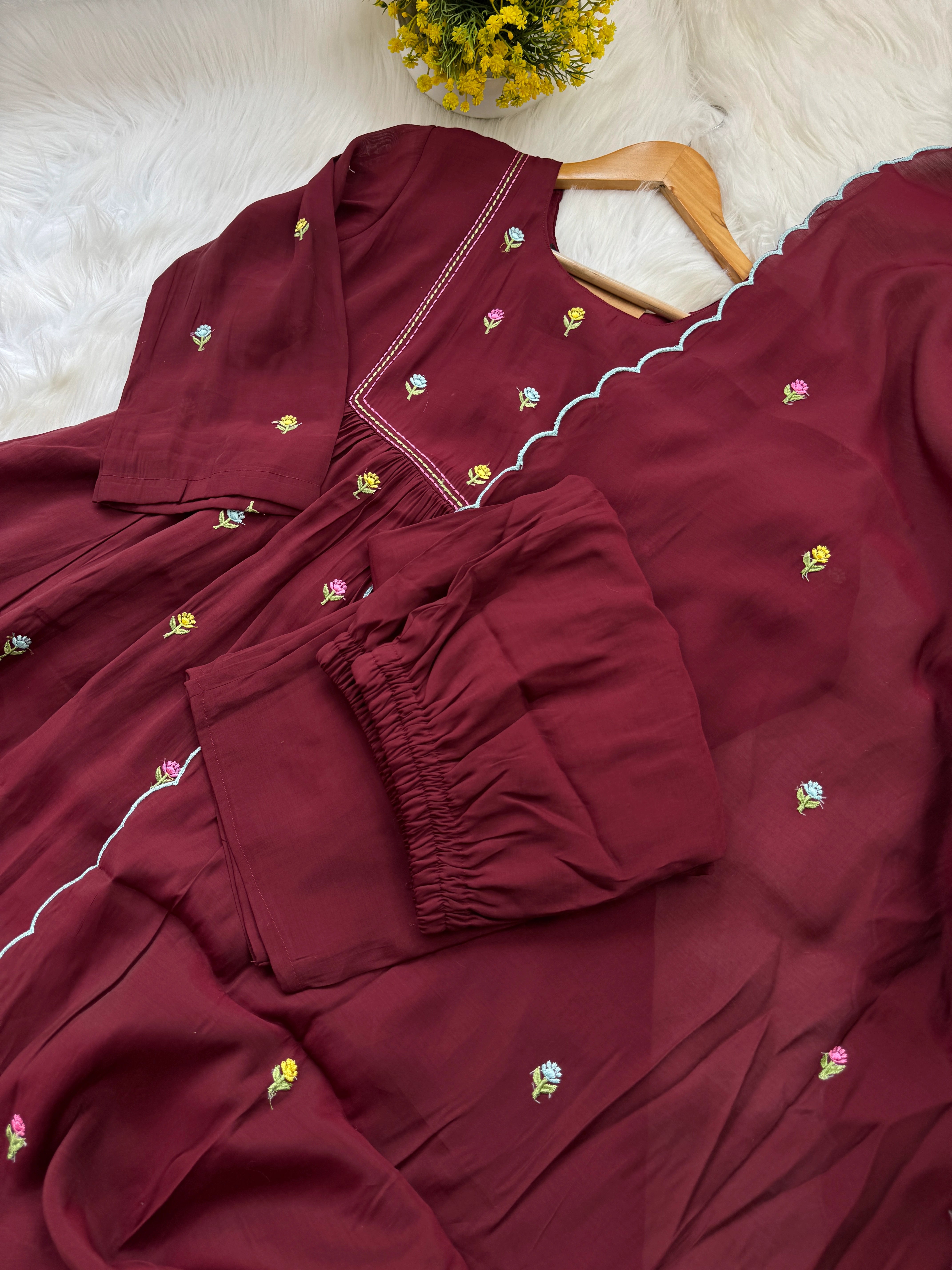 Set Includes: Anarkali Top, Matching Bottom & Dupatta
