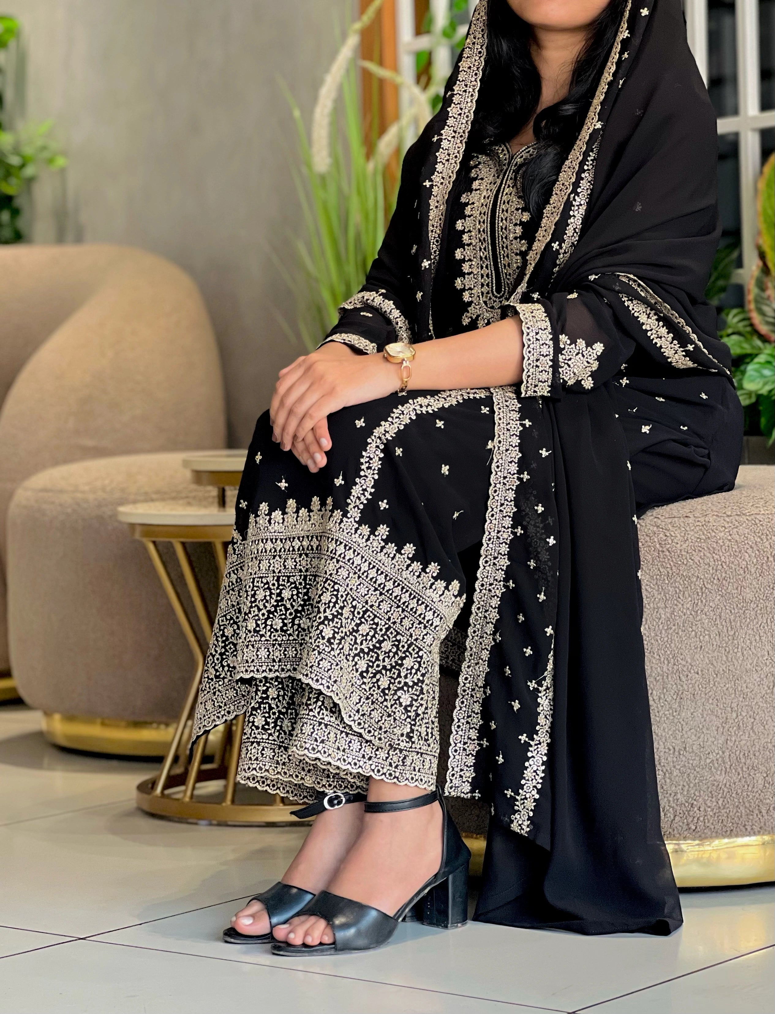Get ready to turn heads at your next event with our Georgette Partywear Suit with Mirror Work. Crafted from lightweight, flowy georgette, this suit features elegant mirror work that adds just the right amount of sparkle, making it perfect for festive occasions, parties, or evening gatherings.