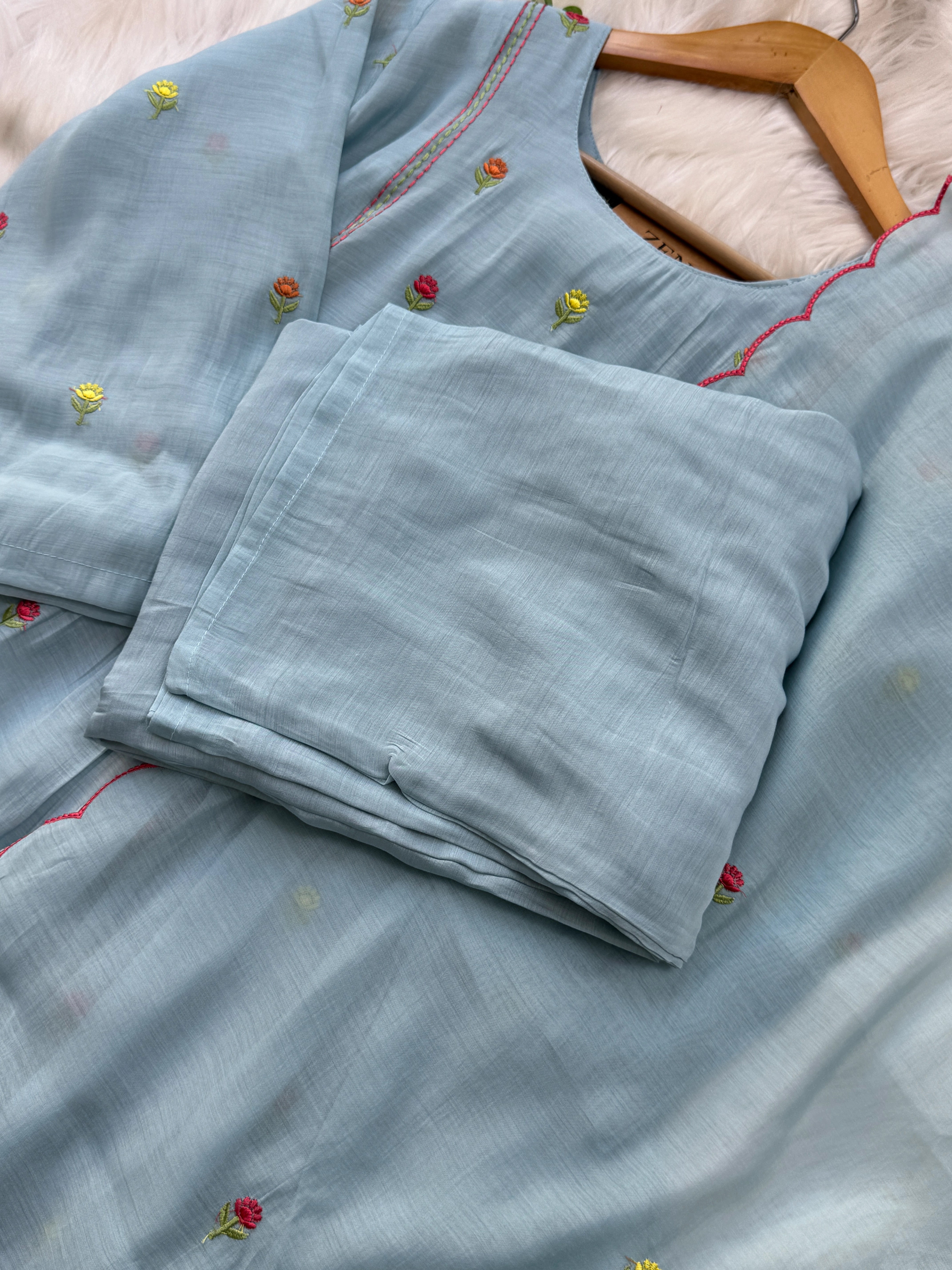 - Mul Chanderi silk / M / sky blue - ₹2,500.00