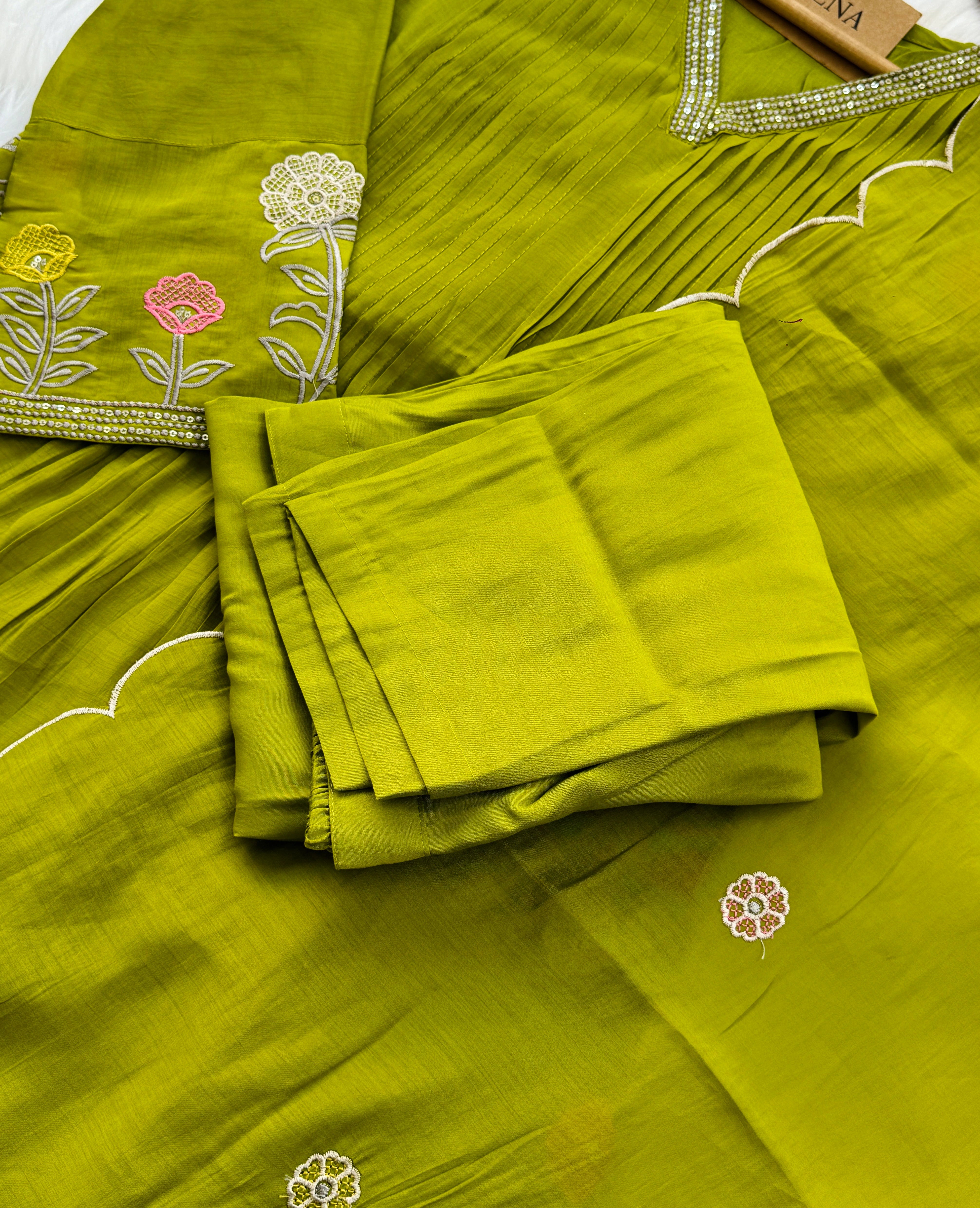 ✨ Mul Chanderi Embroidered Anarkali Set ✨