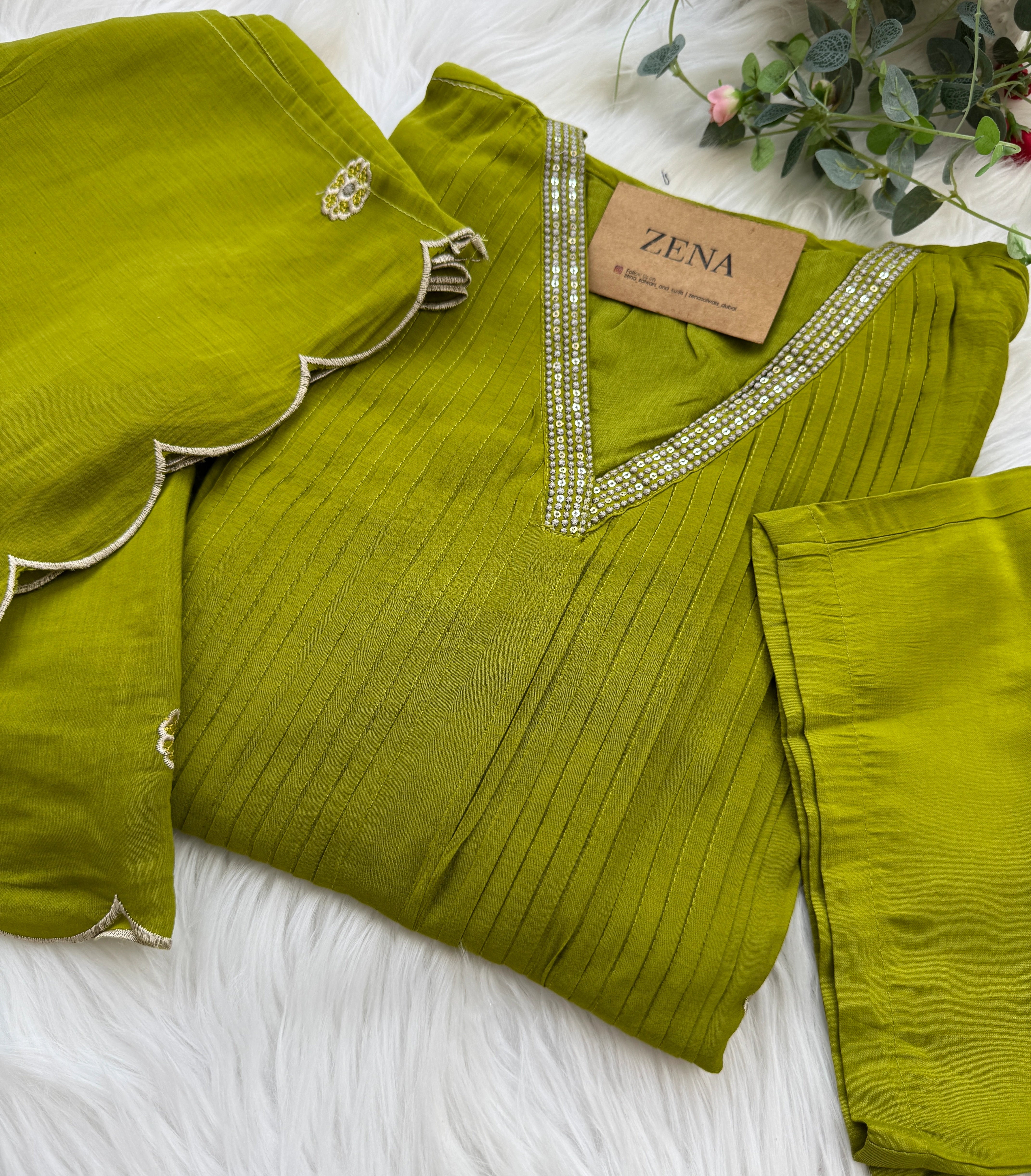 - Parrot Green / M / Mul Chanderi - ₹2,500.00