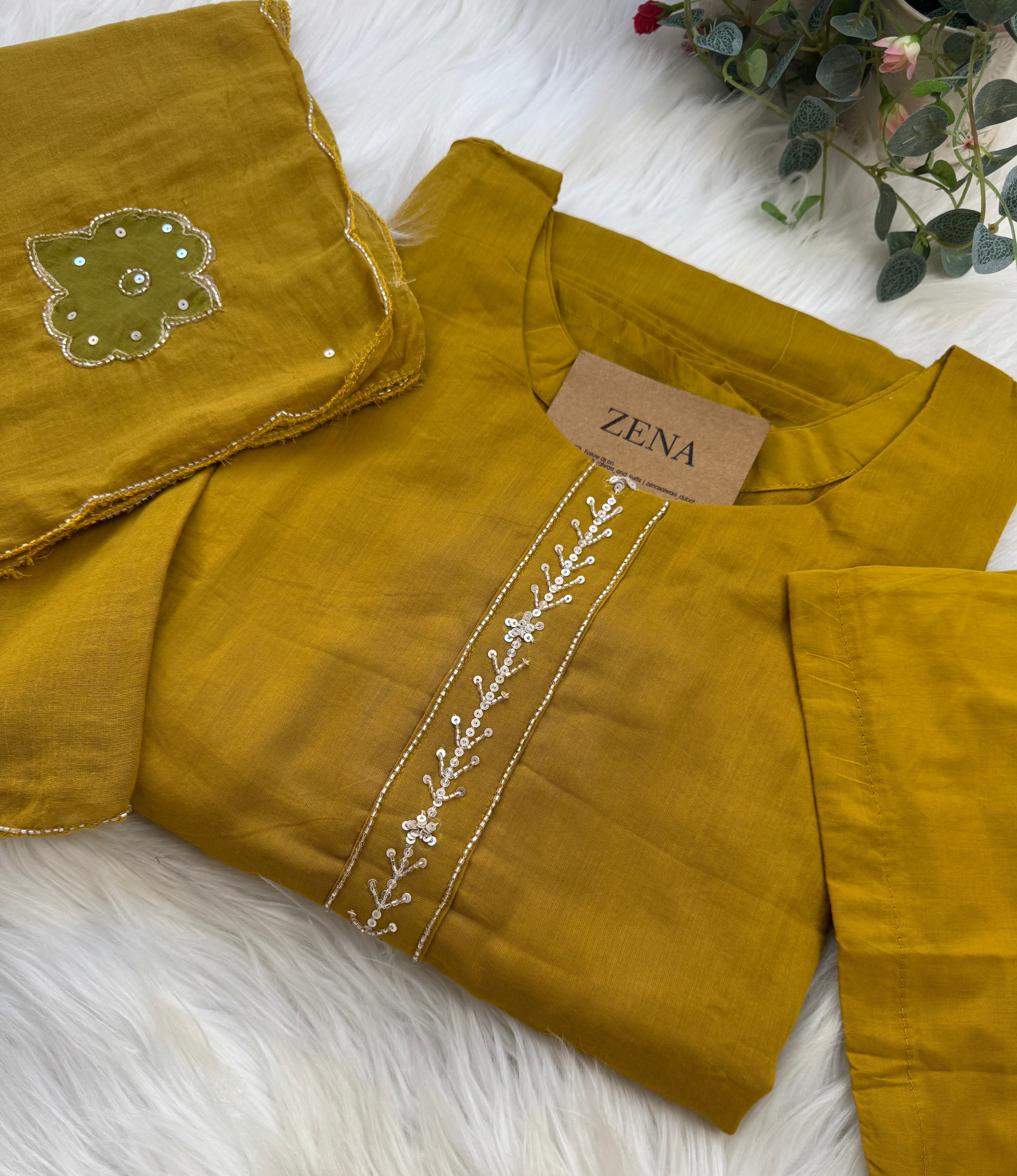 - mustard yellow / XL / Mul Chanderi - ₹1,499.00