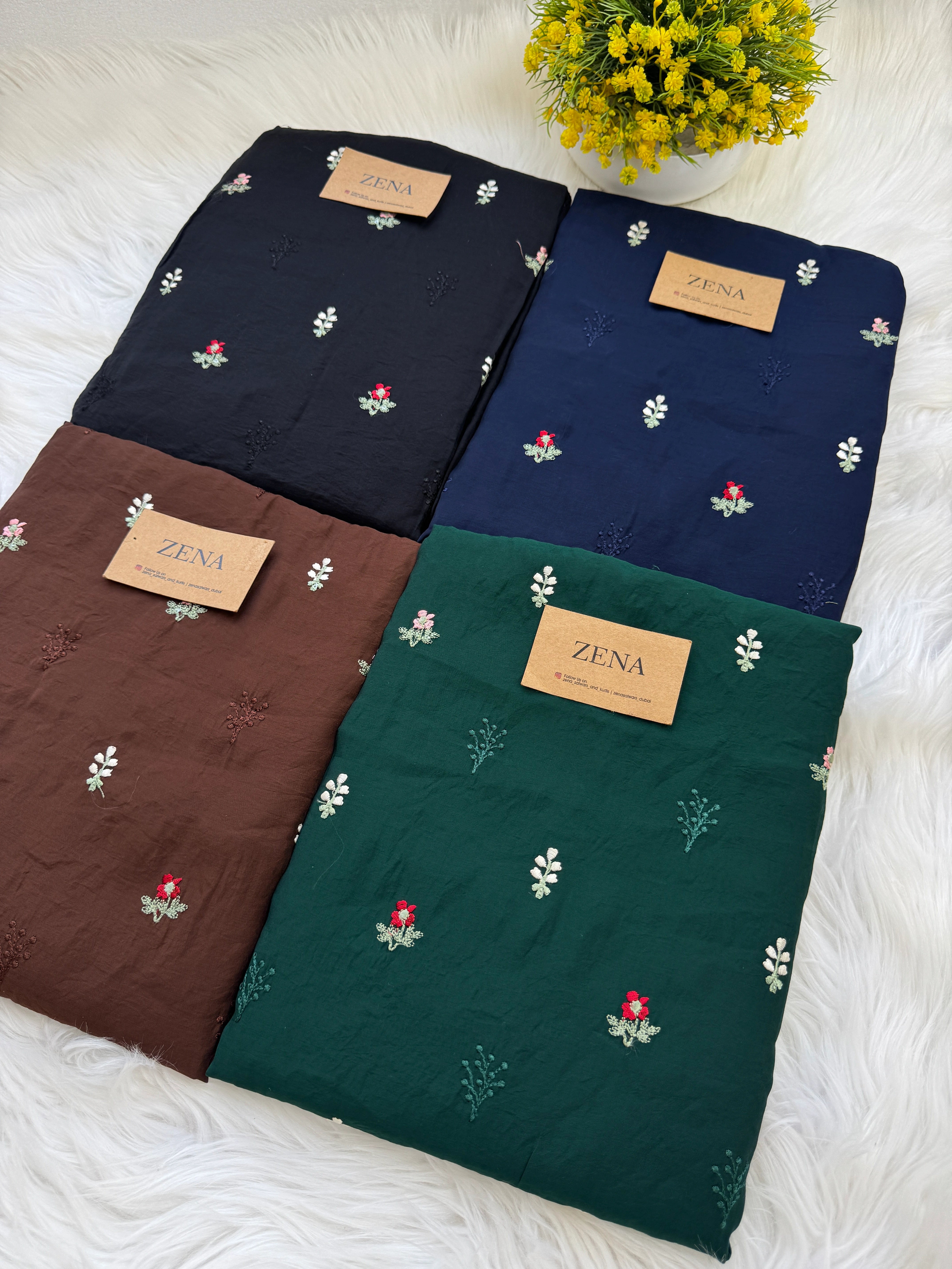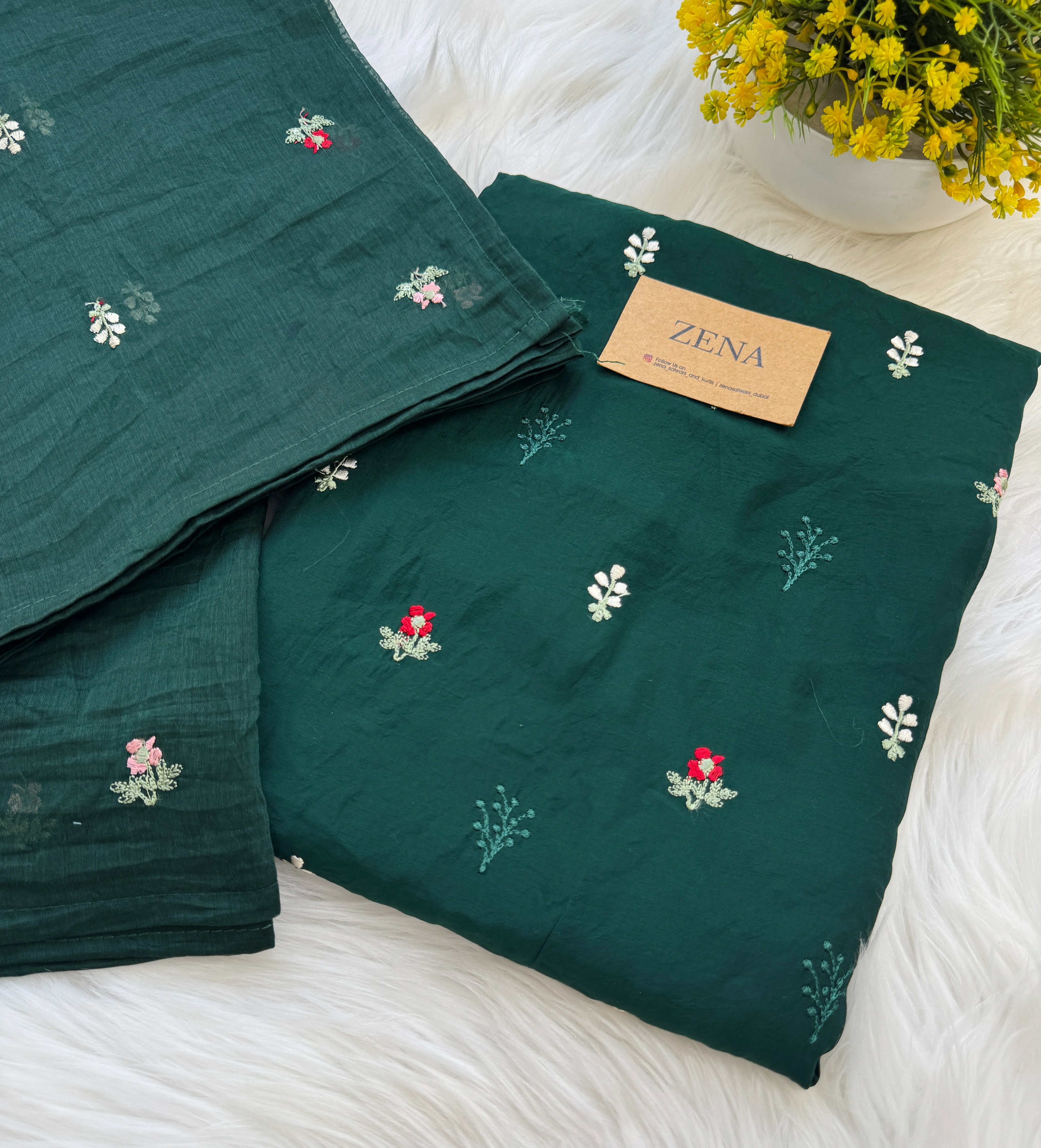 ✨ Mul Chanderi Unstitched Suit with Embroidery Buttis ✨ – Zena