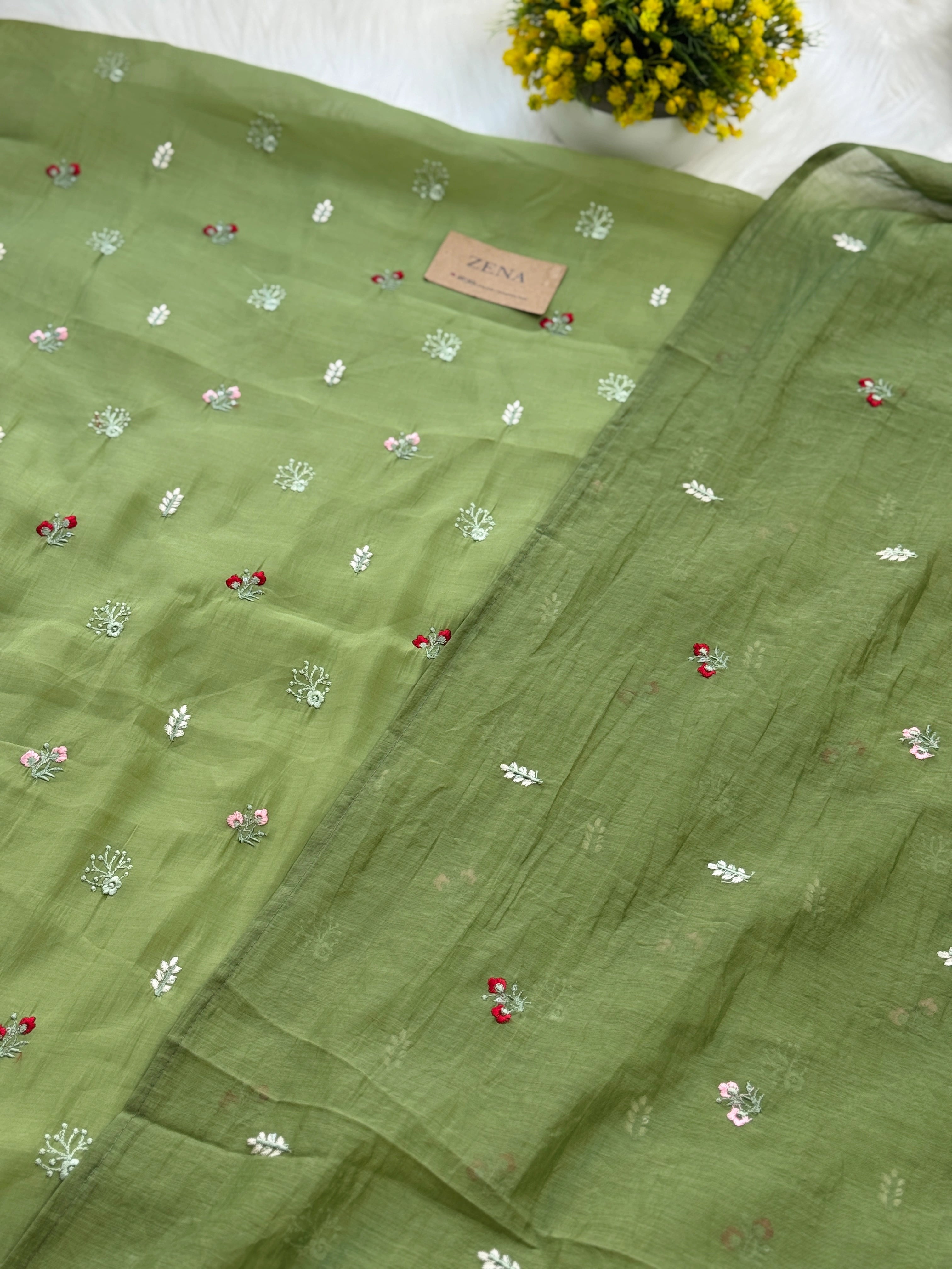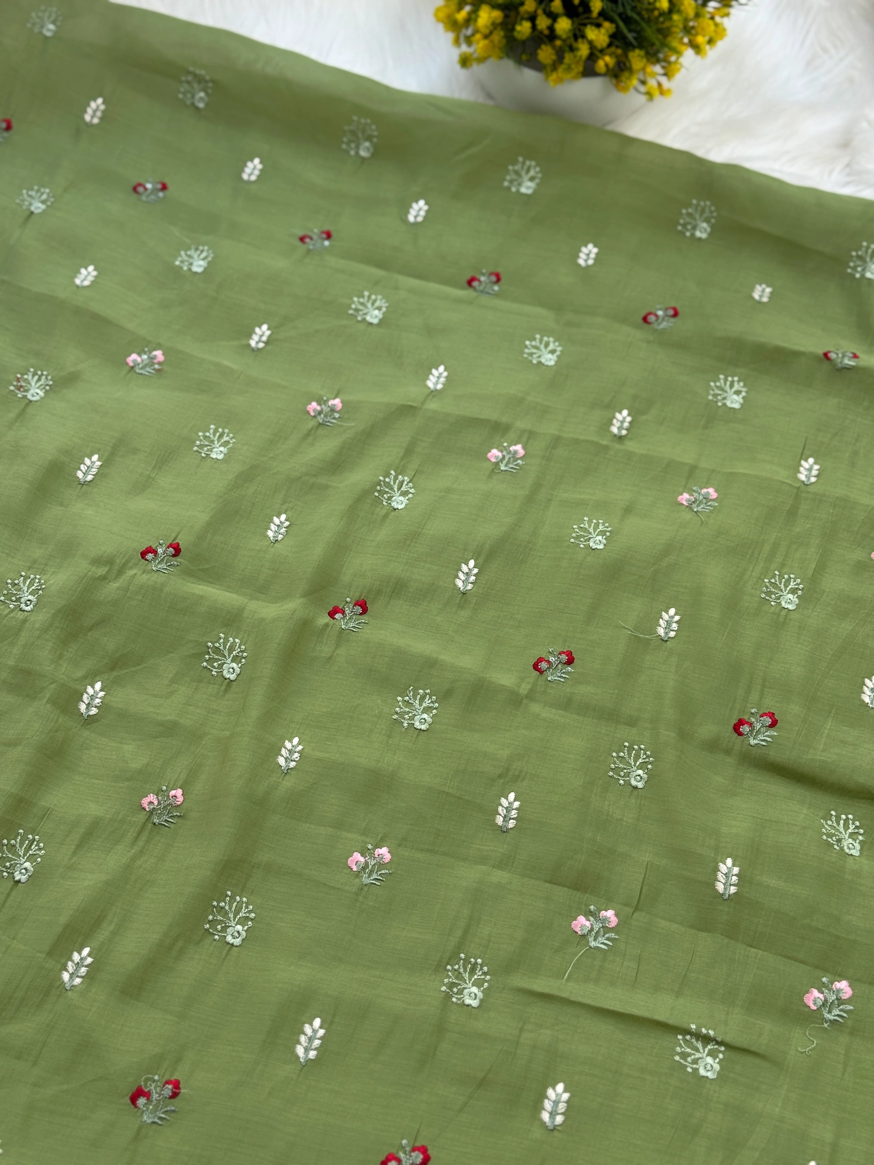 ✨ Mul Chanderi Unstitched Suit with Embroidery Buttis ✨