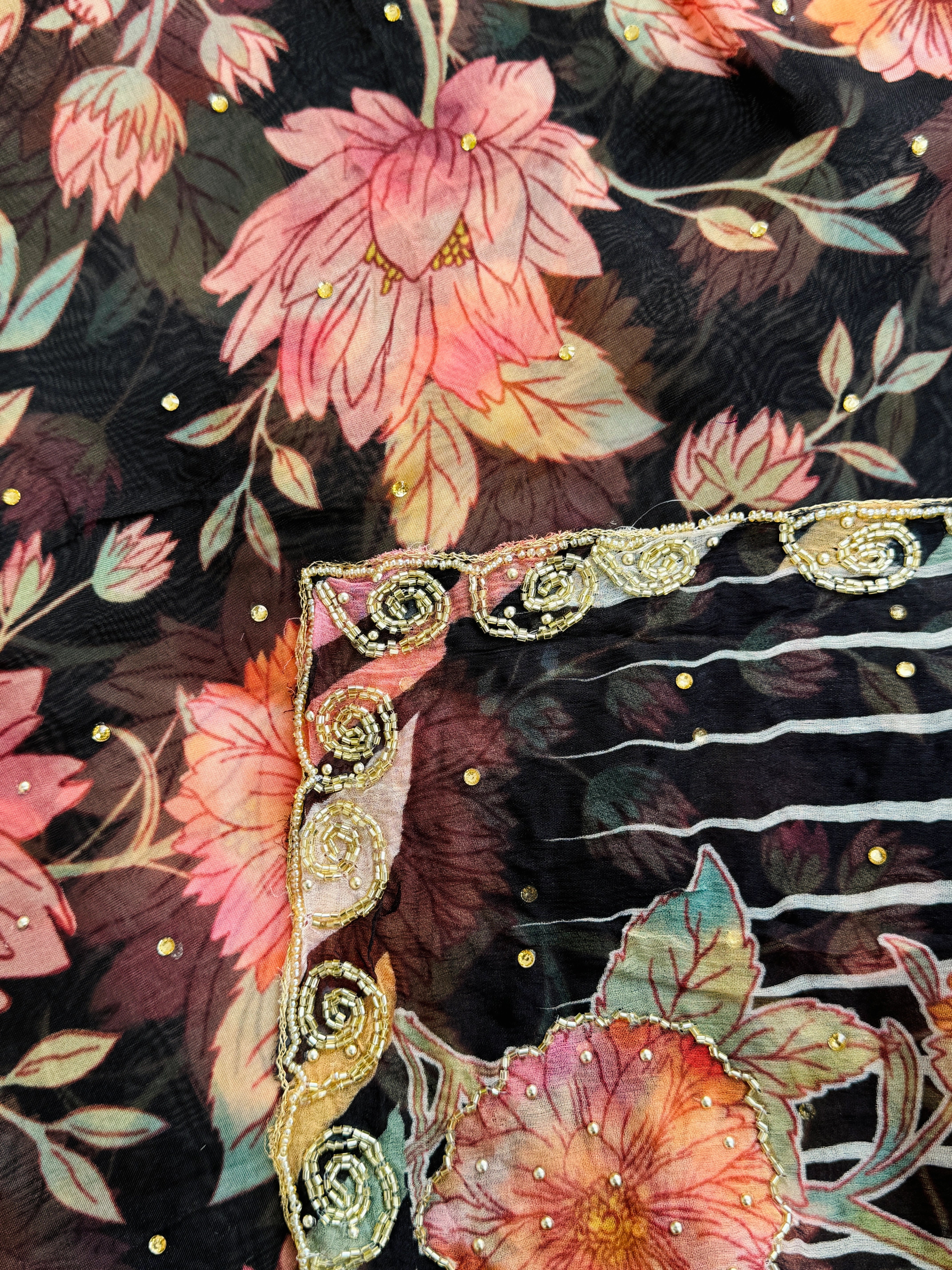 Create a statement look with this exquisite Premium Viscose Organza Unstitched Suit. Crafted from rich viscose organza fabric, this ensemble offers a graceful drape with a soft sheen, making it perfect for elegant festive styling.