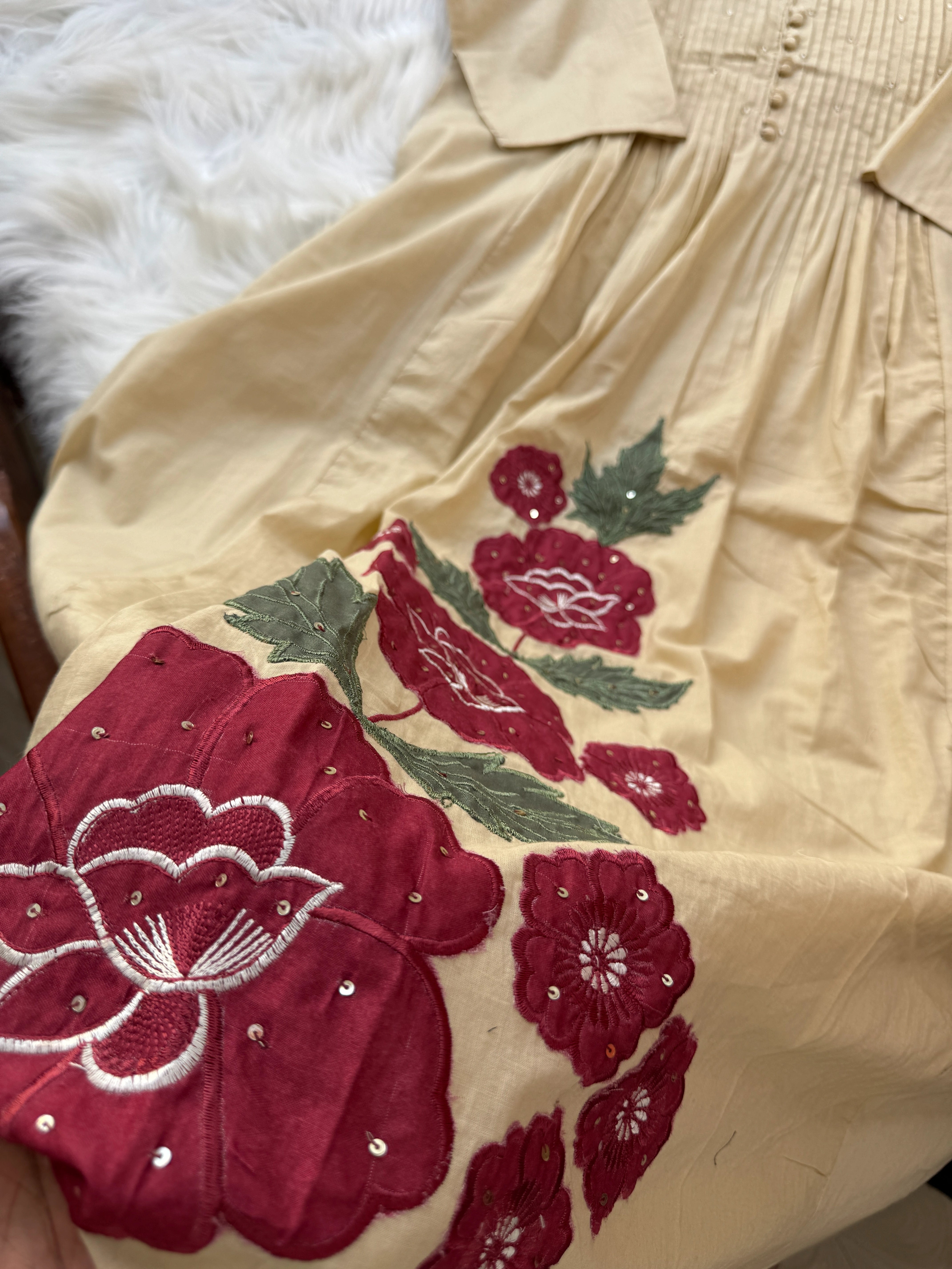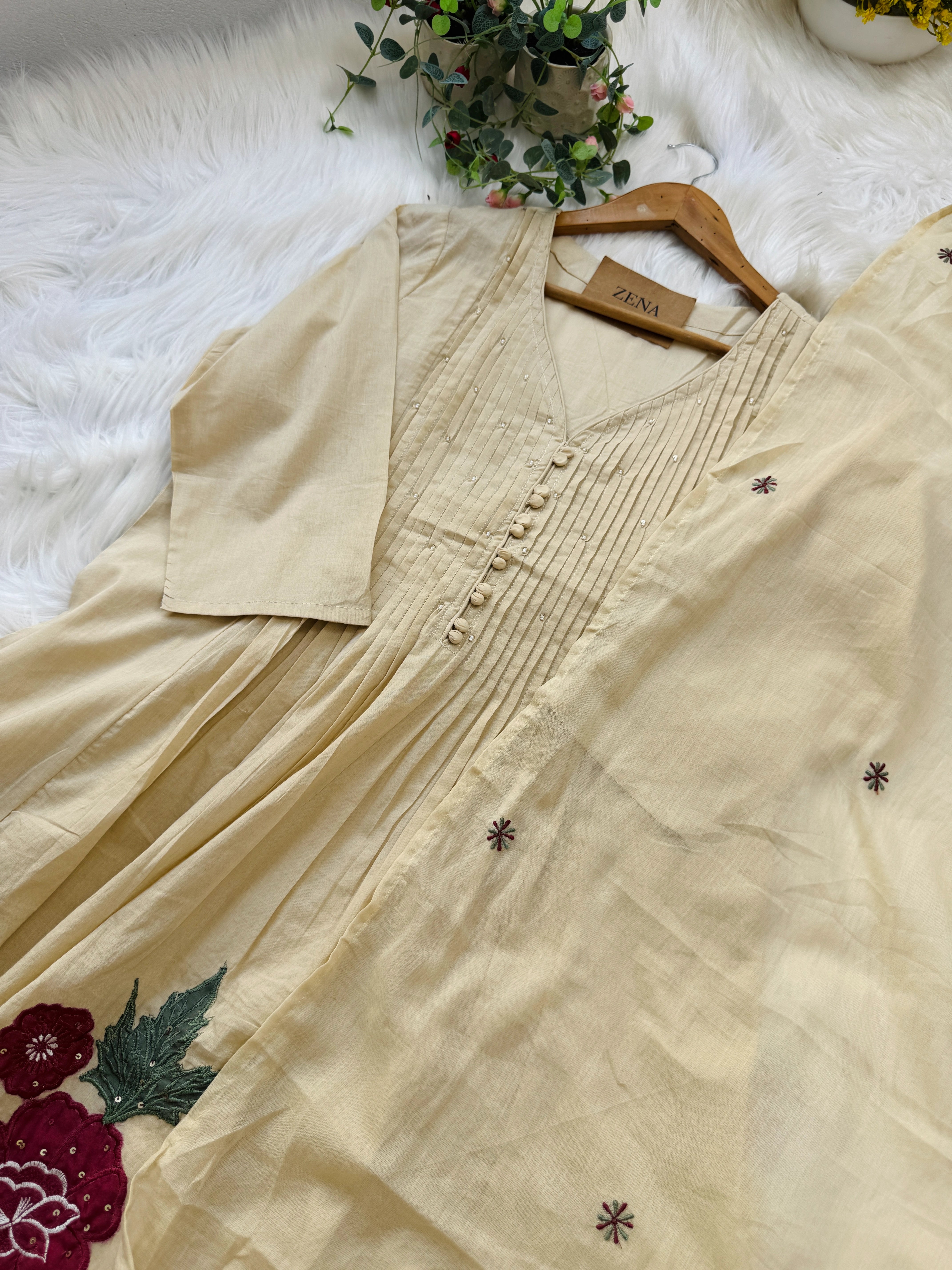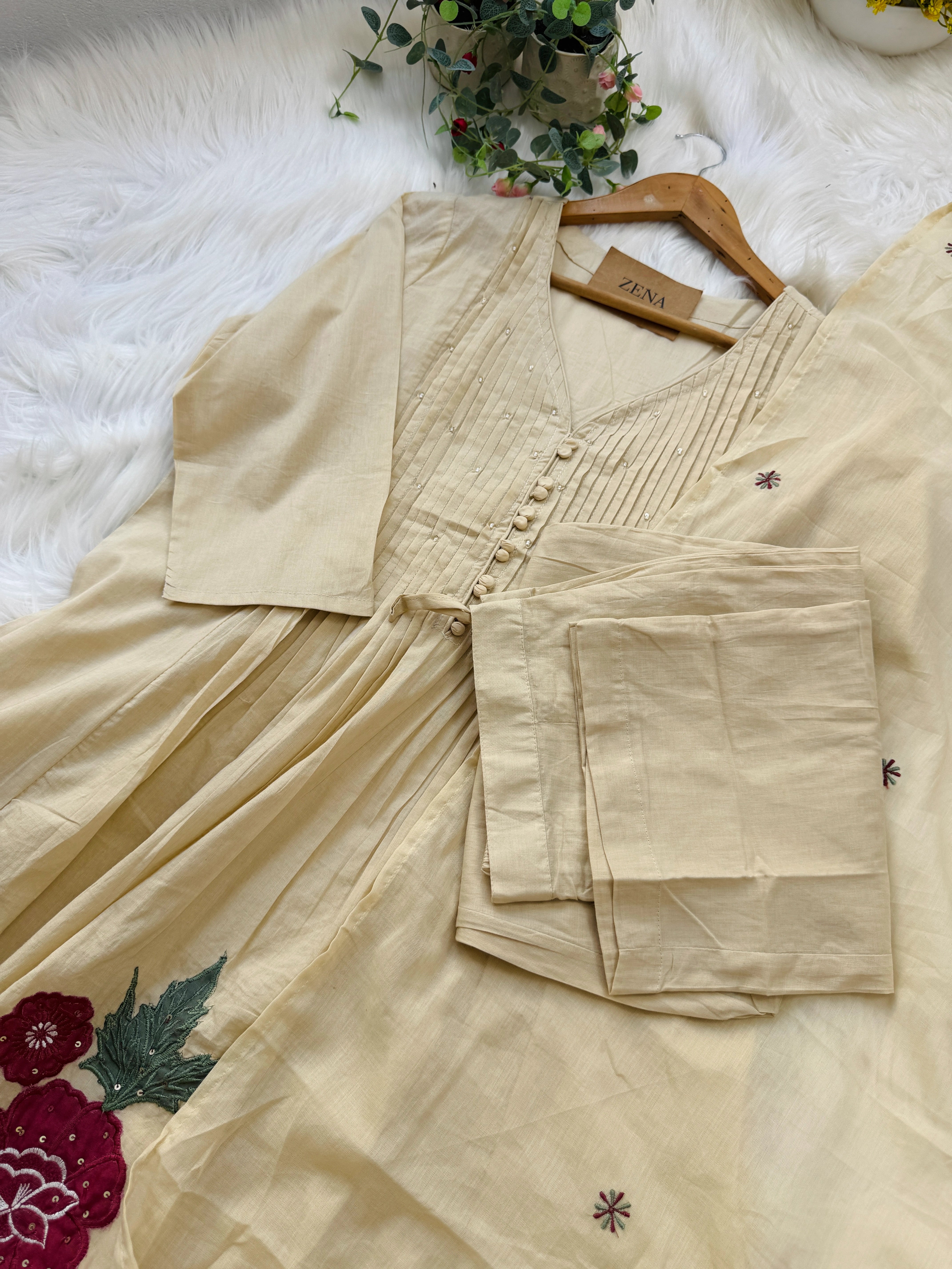 ✨ Pure Cotton Hand Detailed Anarkali Set – Appliqué Work ✨