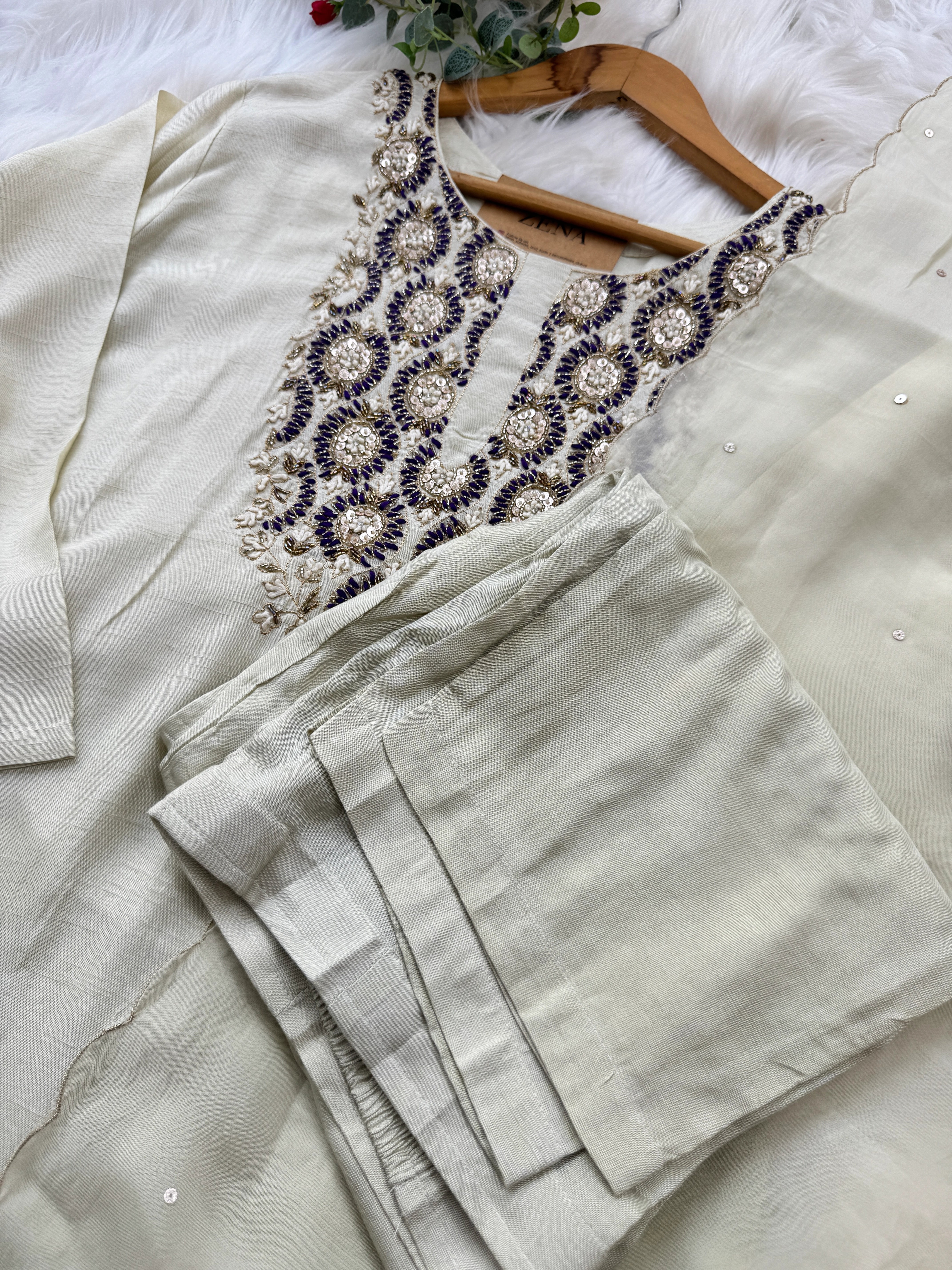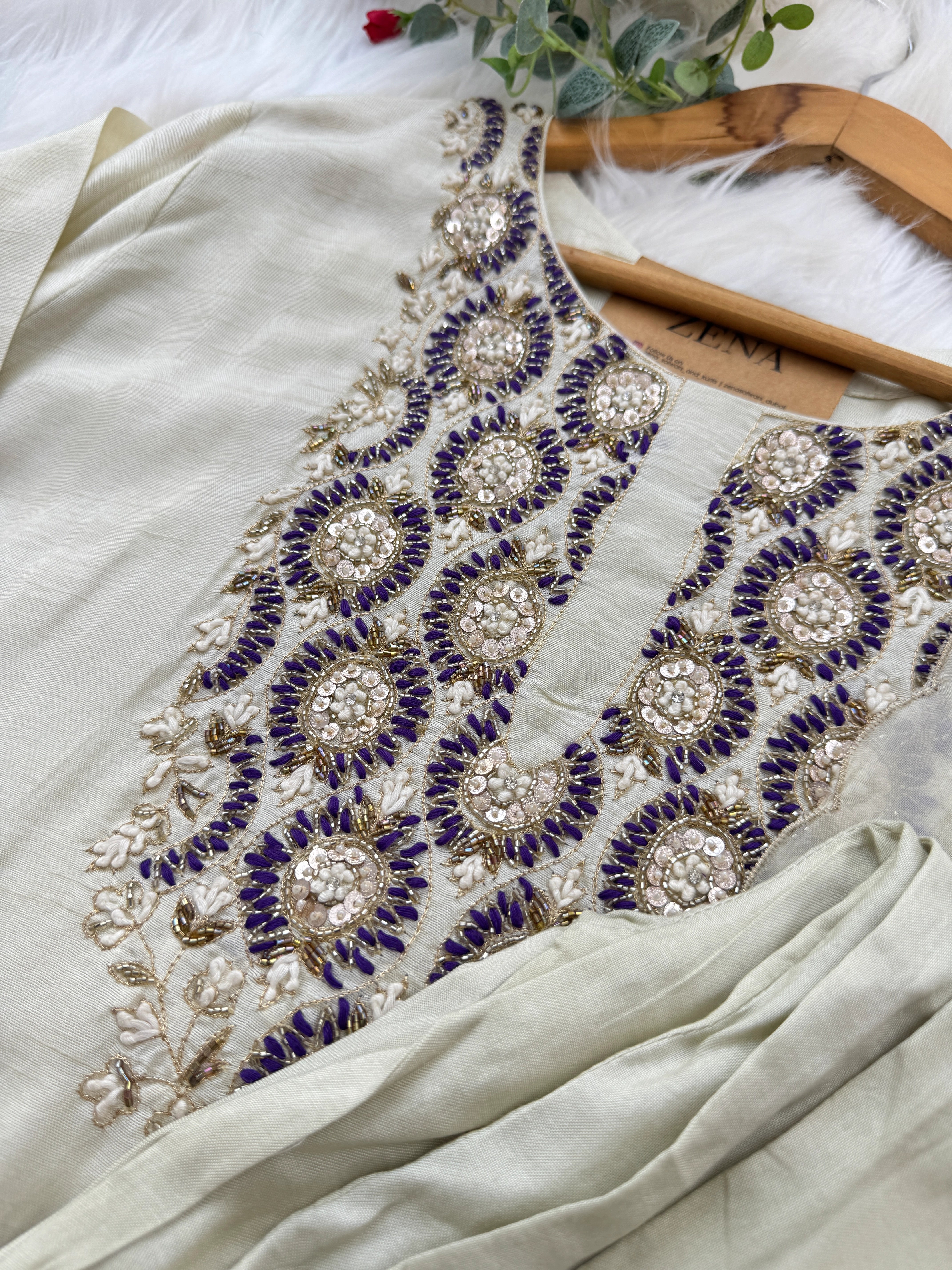 ✨ Pure Dola Silk Handwork Party Wear Kurti Set ✨ – Zena