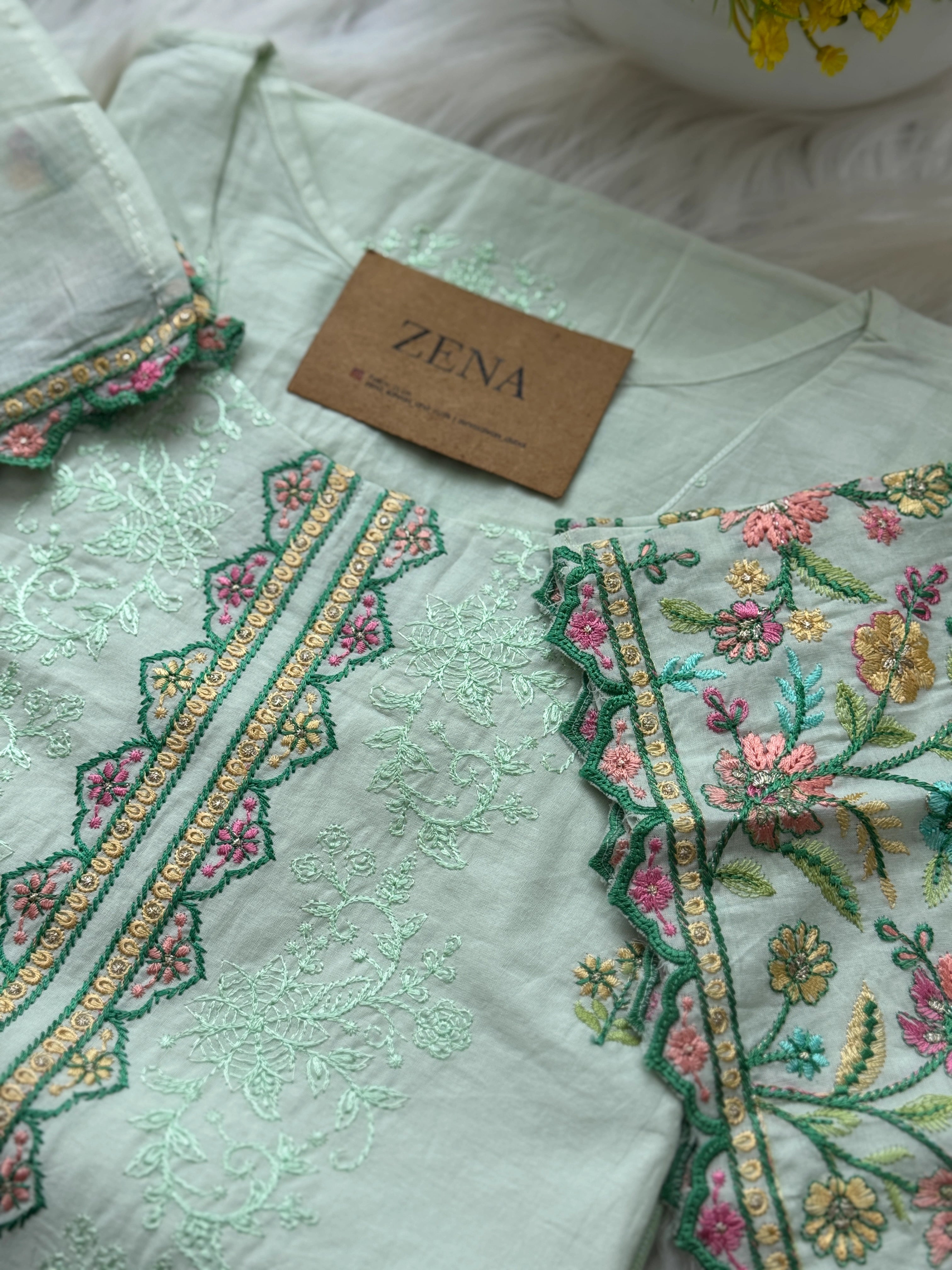 πŸŒ™ Pure Cotton Pakistani Kurti Set with Embroidery πŸŒ™ – Zena