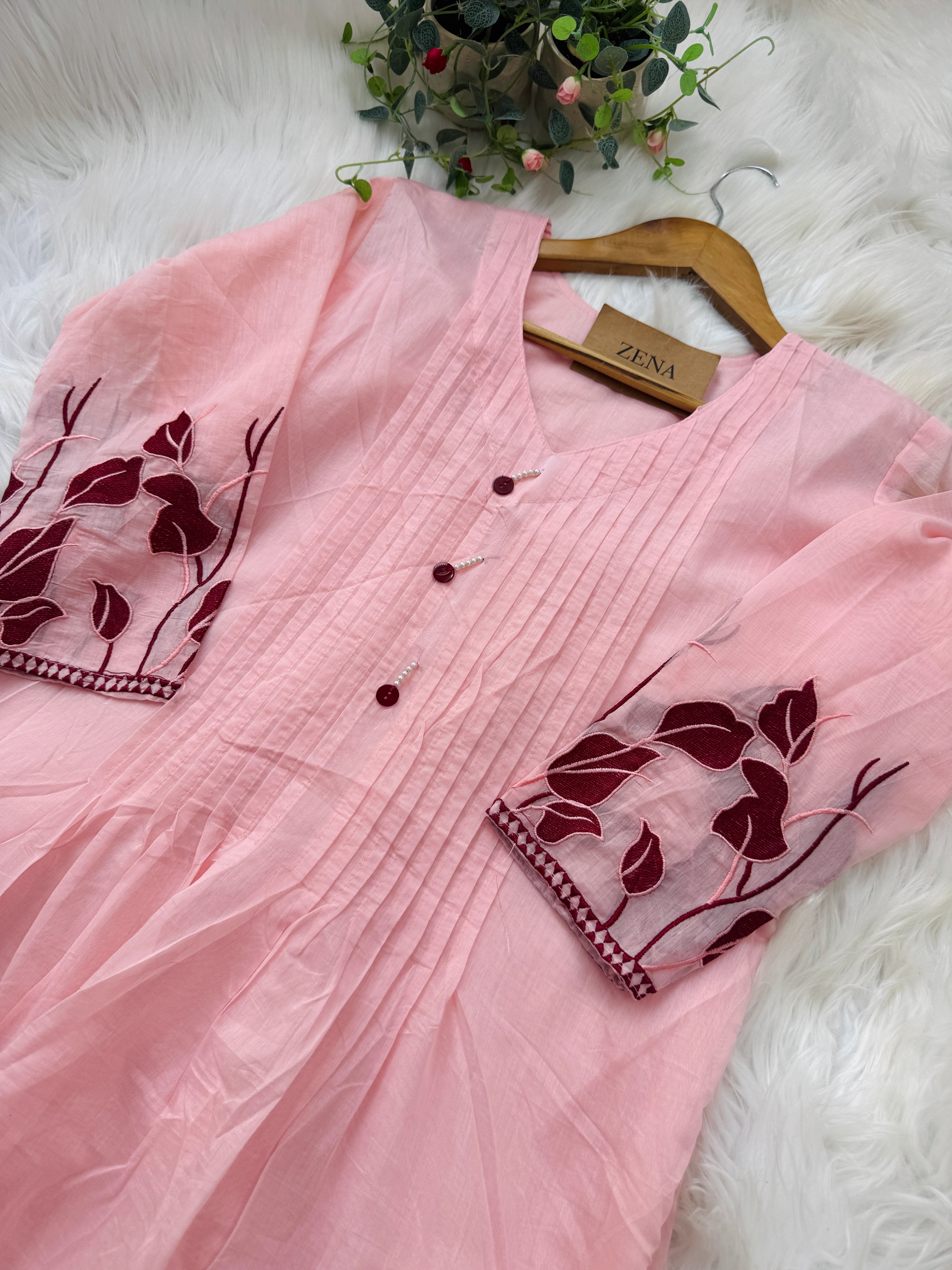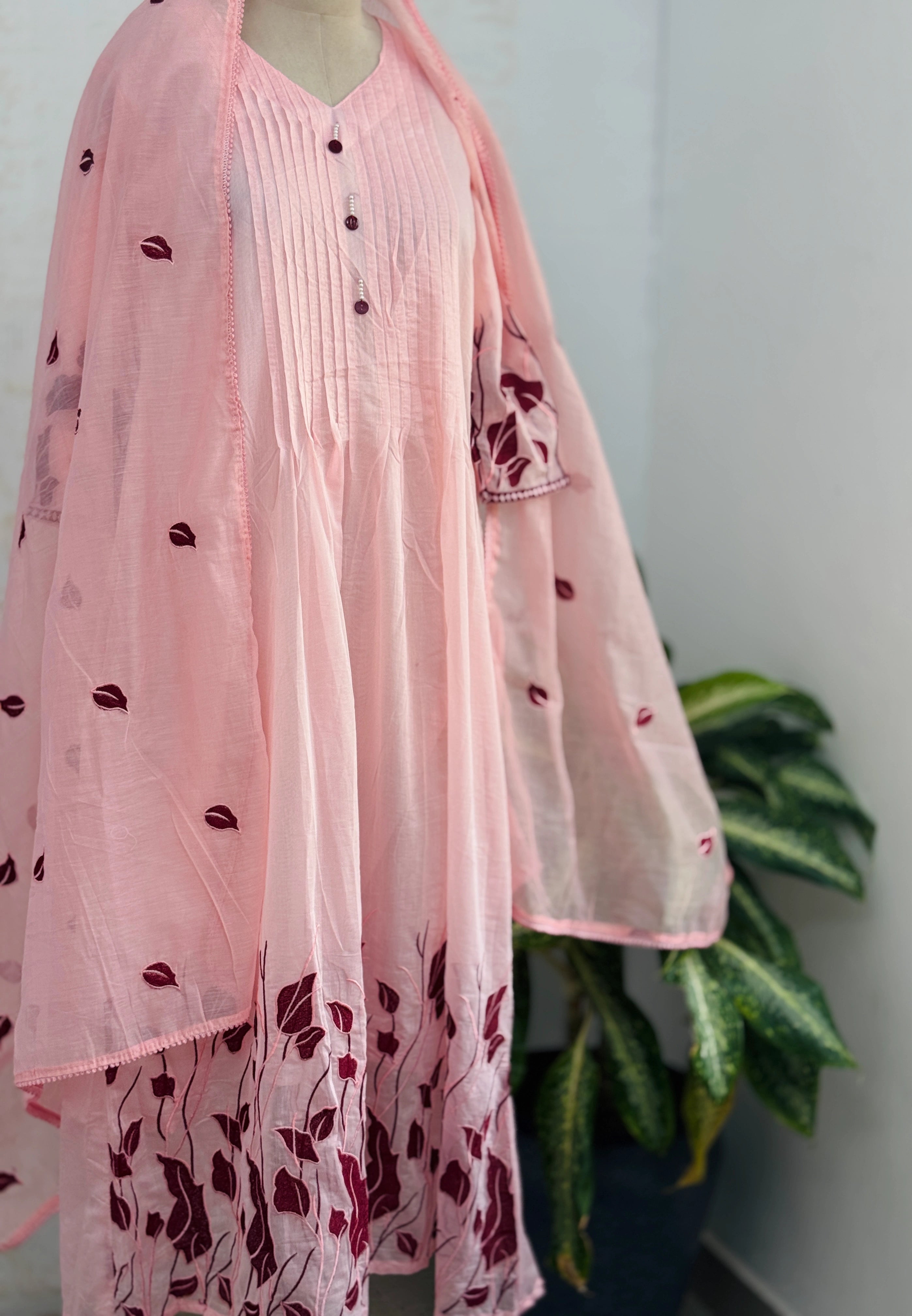 Mul Chanderi Appliqué Work Anarkali Set ✨