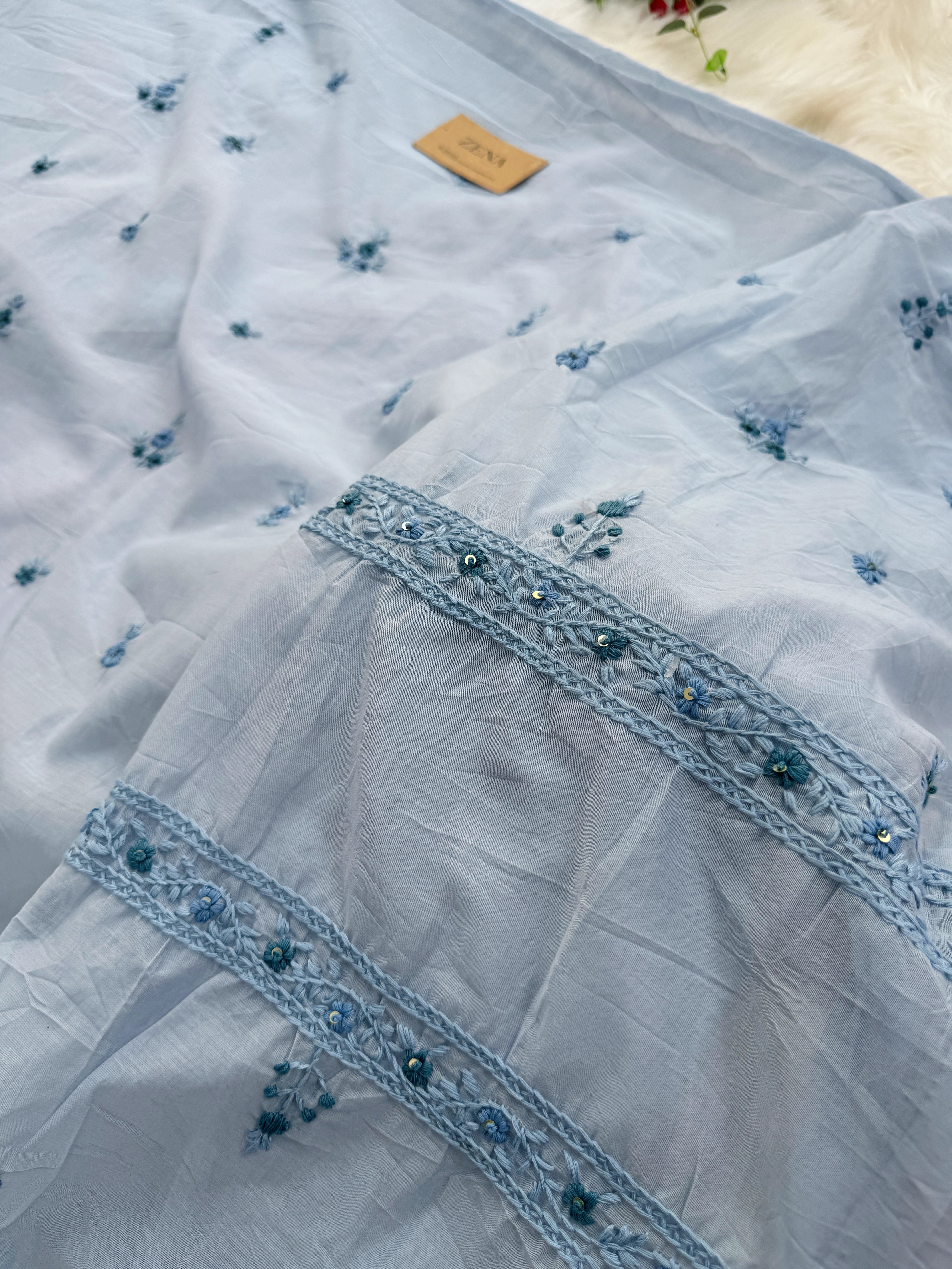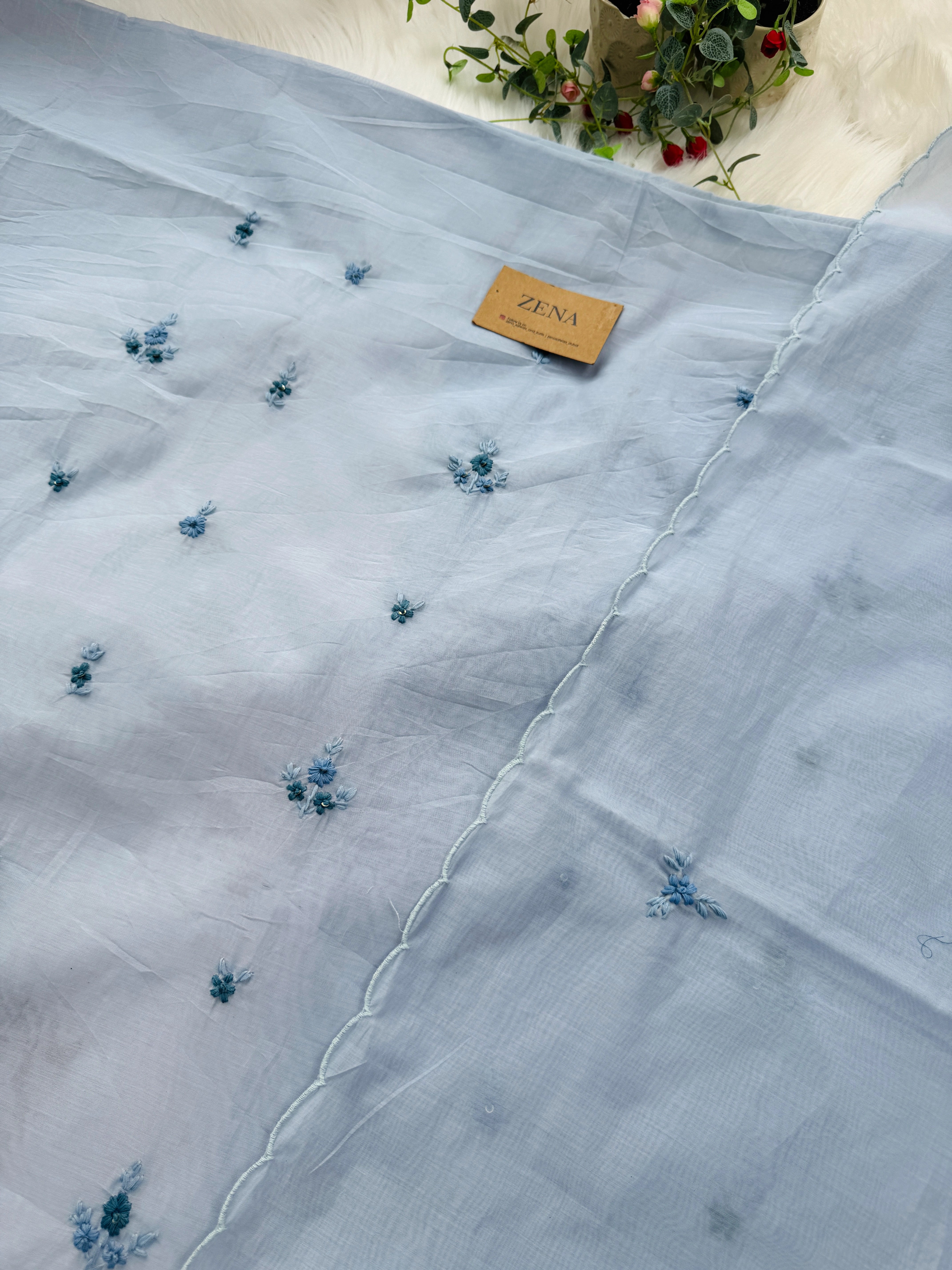 - Mul Chanderi / Light Blue / Free Size - ₹2,100.00