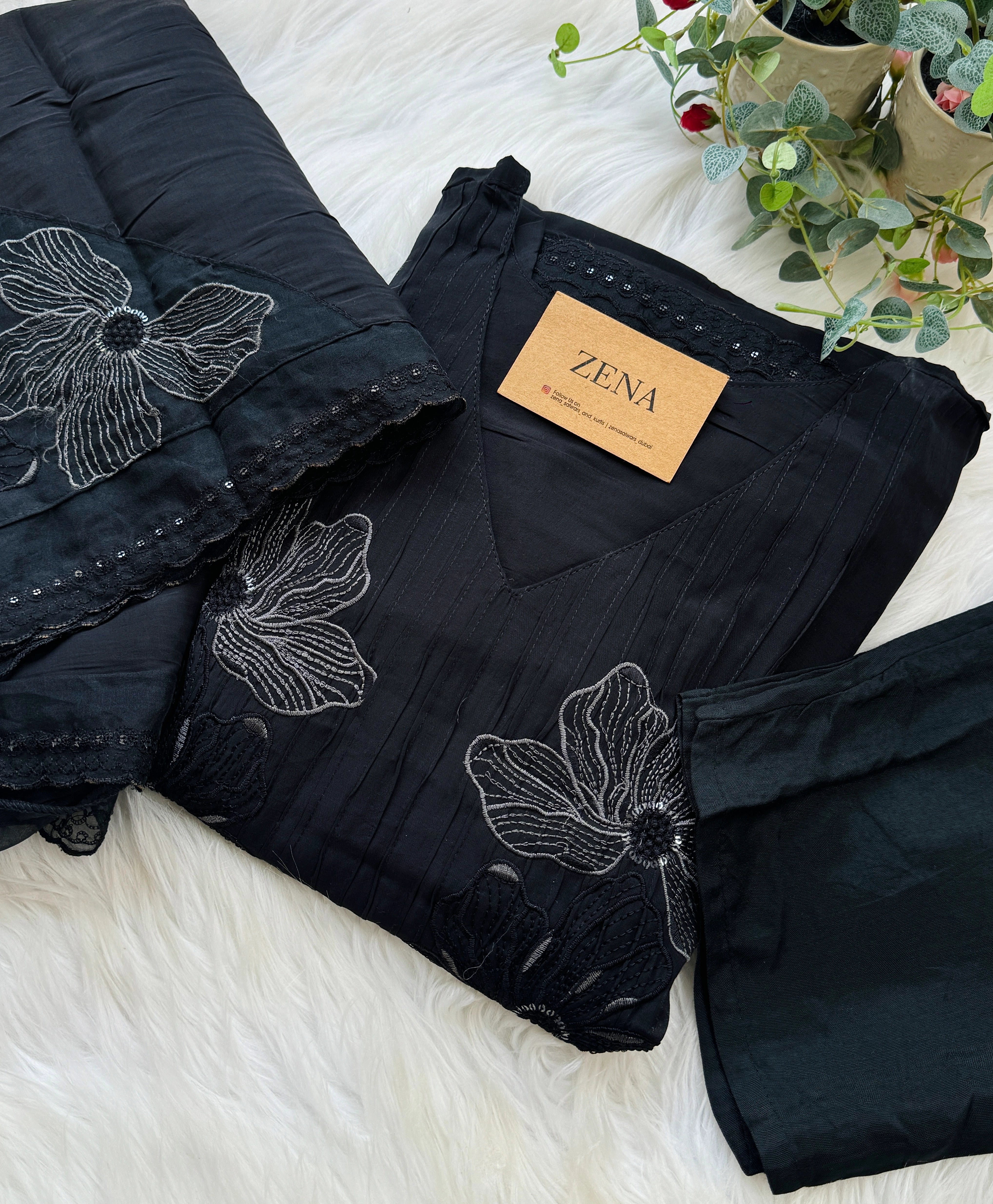- Mul Chanderi silk / Black / M - ₹2,800.00