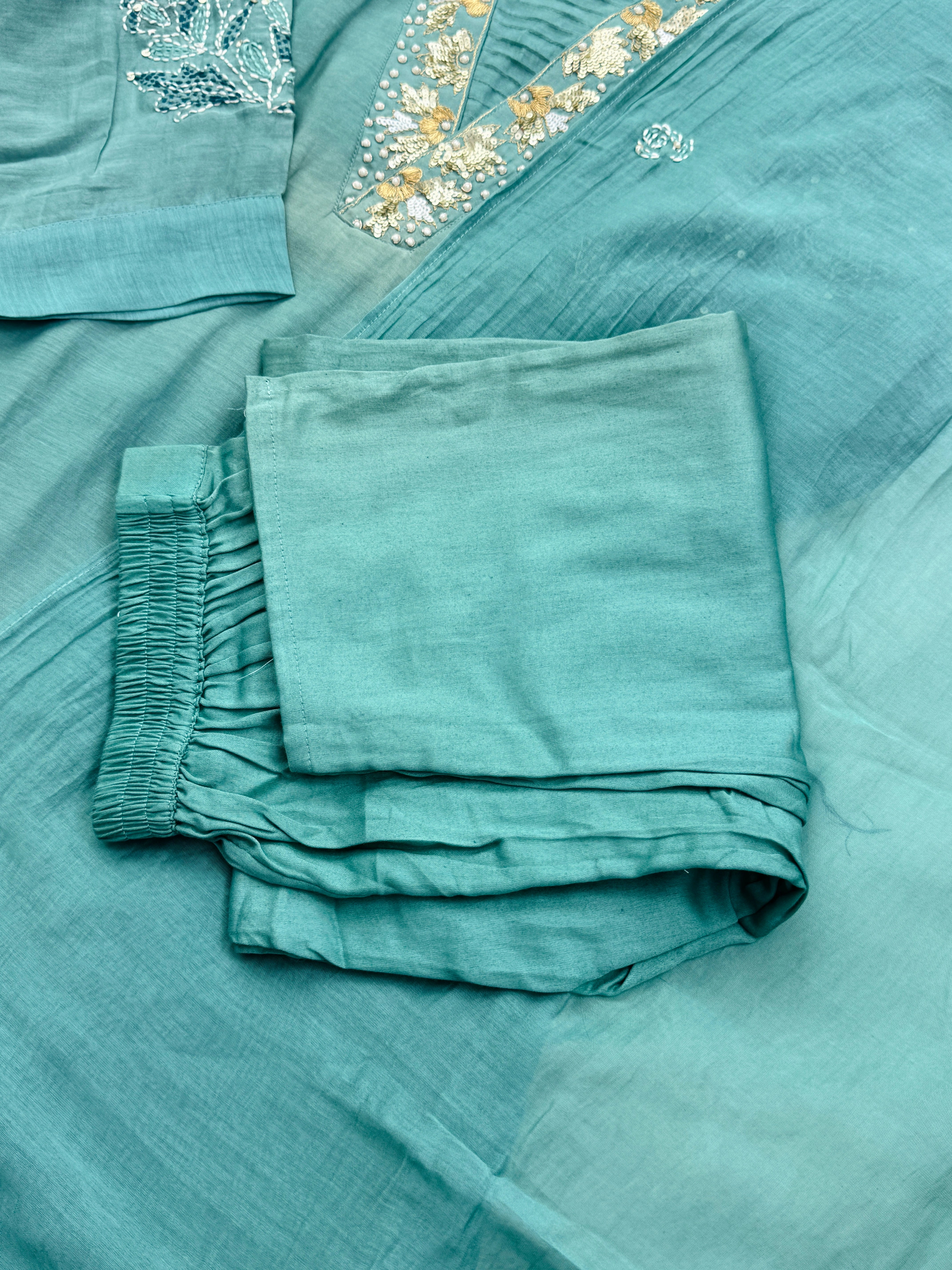 Premium Mul Chanderi Hand Detailed A-Line Kurti Set – Grace in Every Thread
