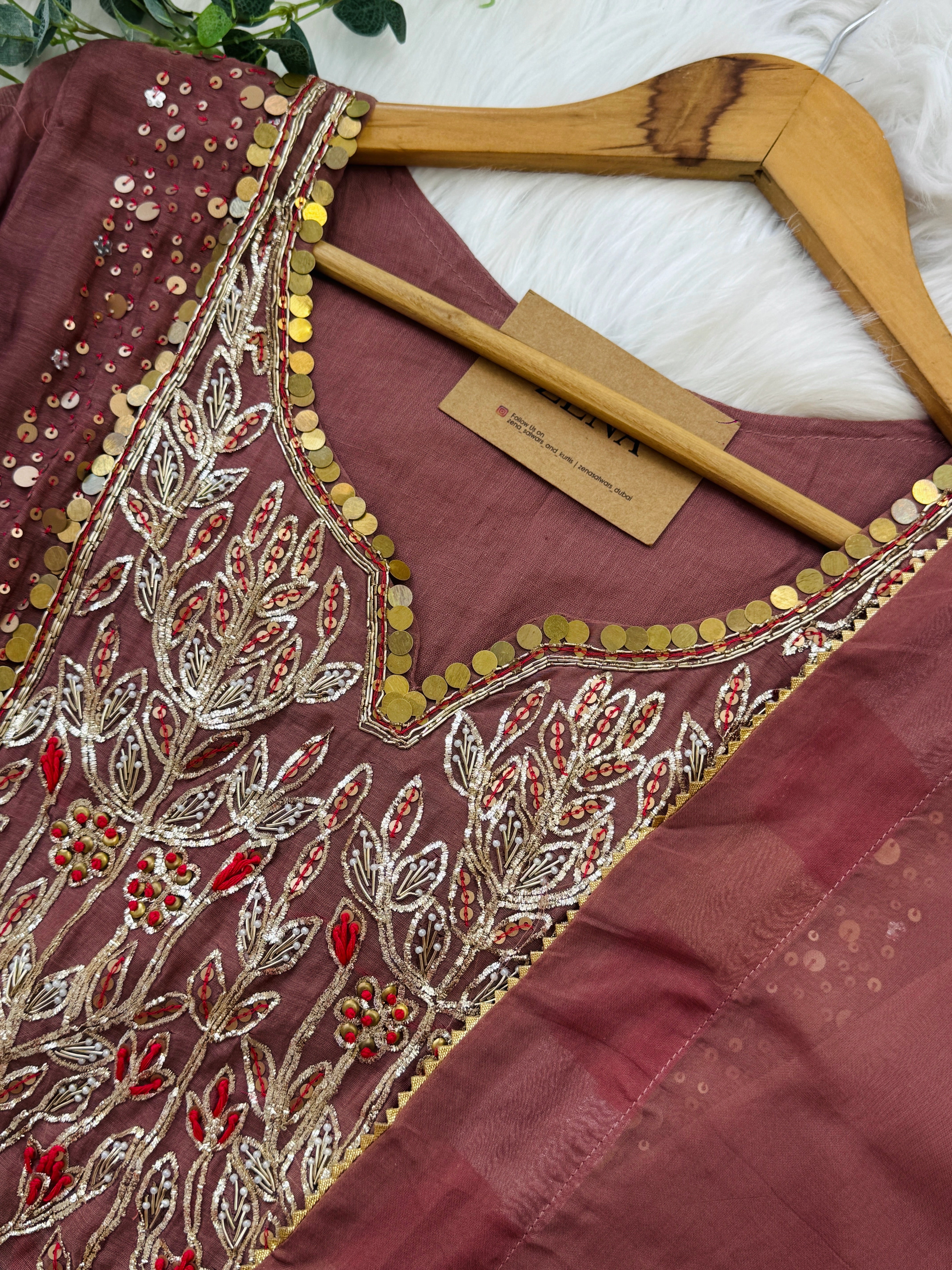 Premium Mul Chanderi Handwork Kurti Set – Top, Bottom & Dupatta