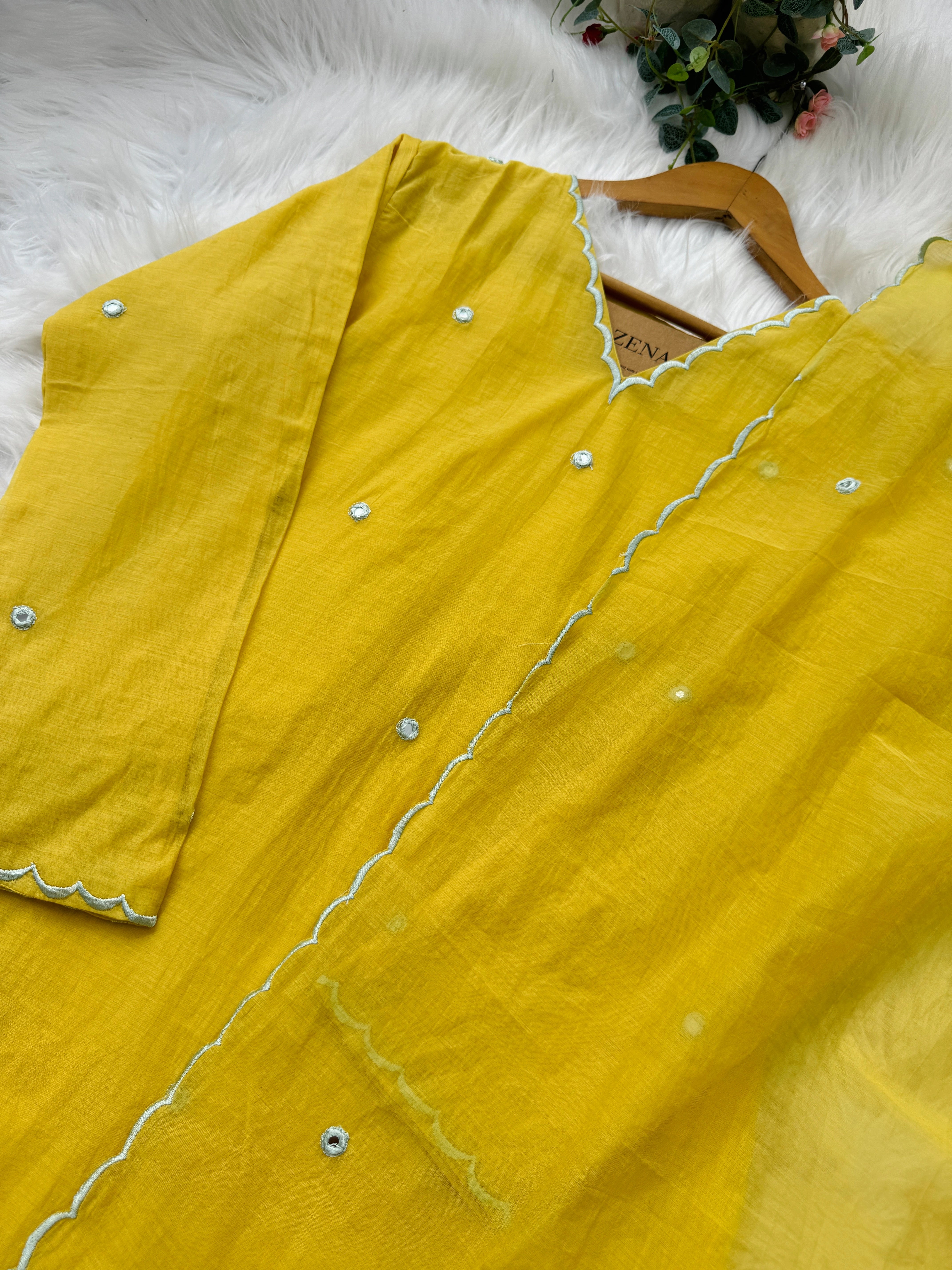 Premium Mul Chanderi Mirror Work A-Line Kurti Set – Shine with Subtle Elegance