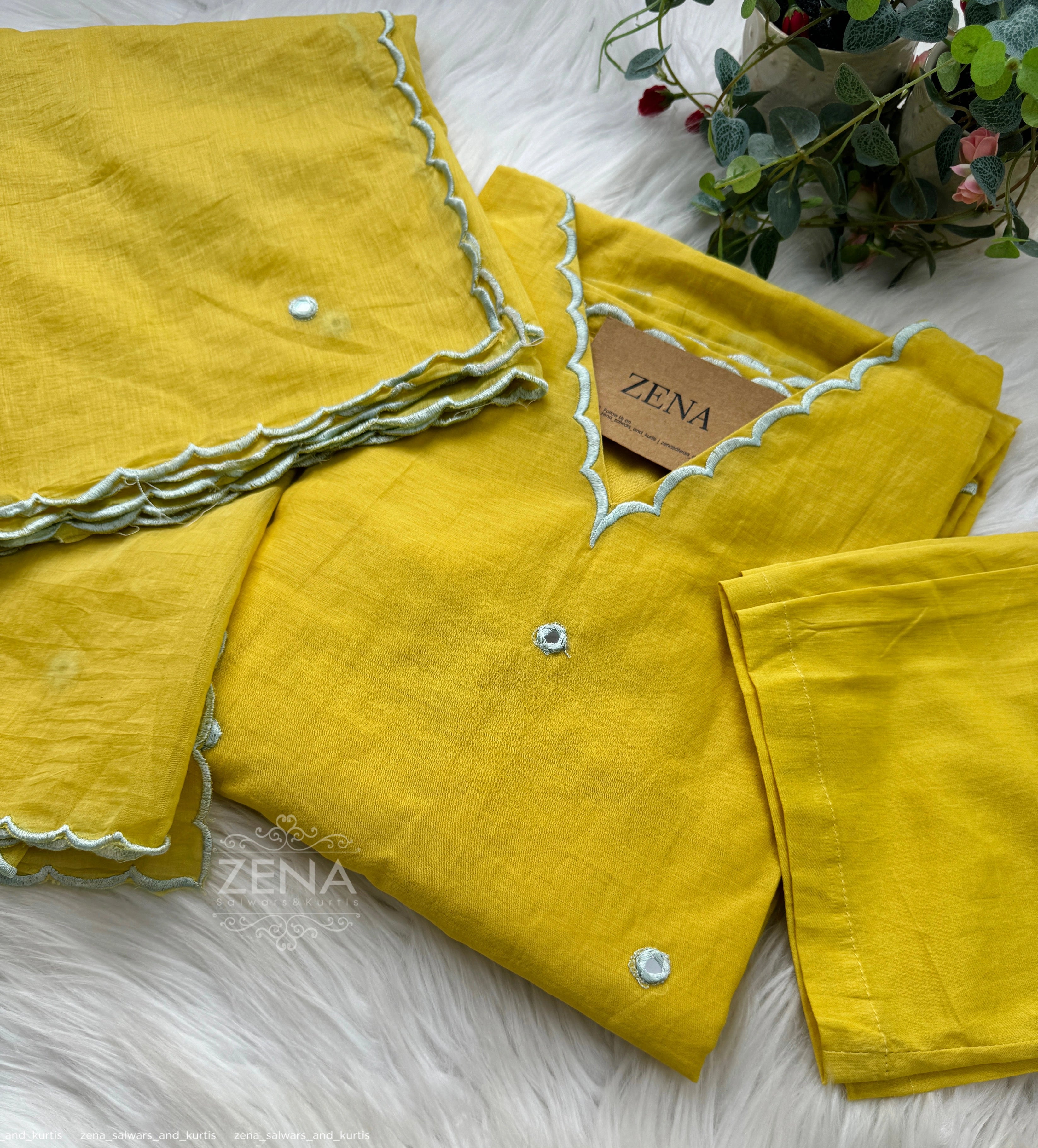 - Mul Chanderi silk / Yellow / M - ₹2,600.00