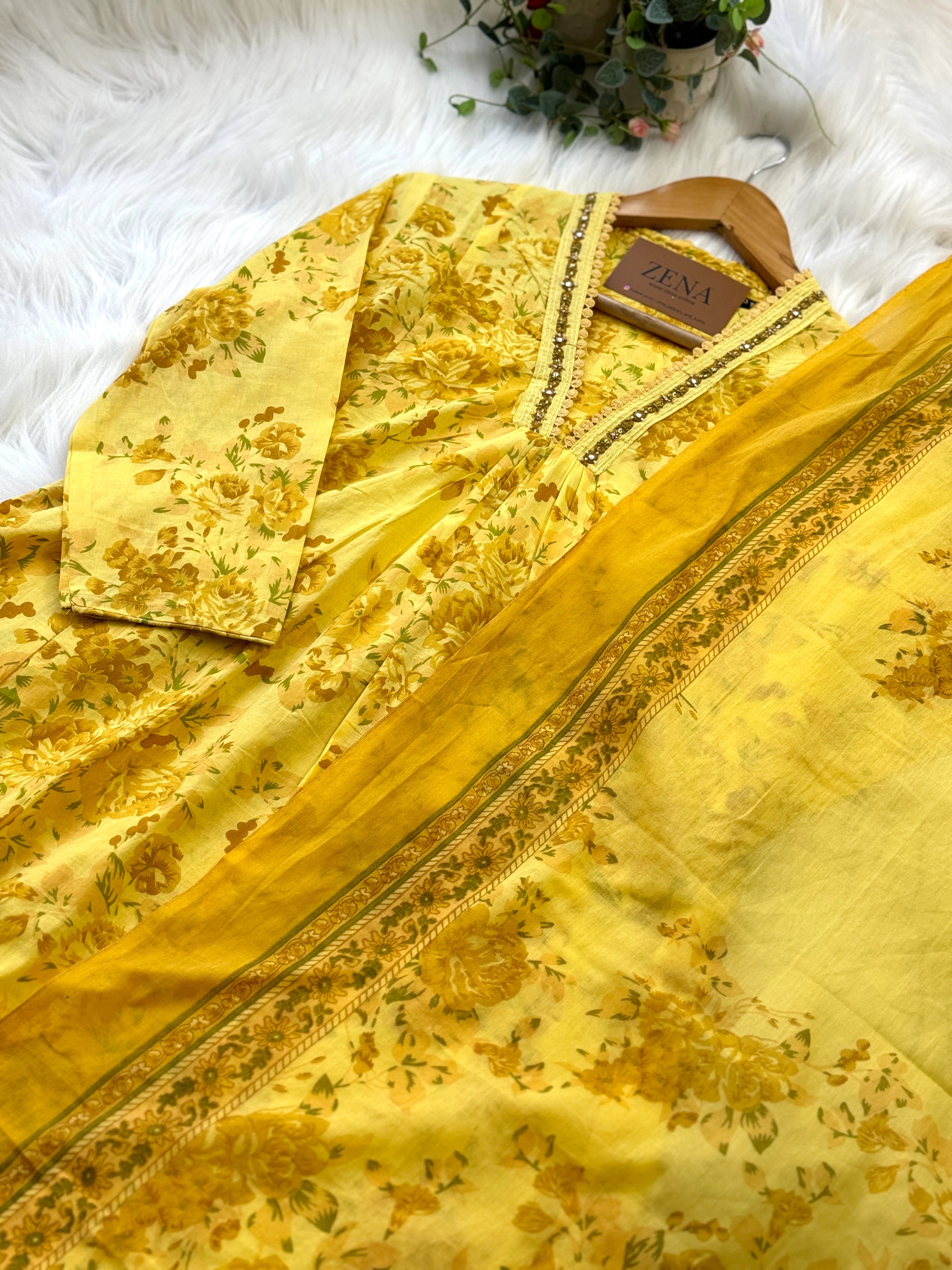Stay effortlessly elegant with this Pure Cotton A-Line Kurti Set, designed for all-day comfort and timeless style. Made from breathable cotton fabric, this ready-to-wear set is perfect for office wear, casual outings, or light festive occasions.