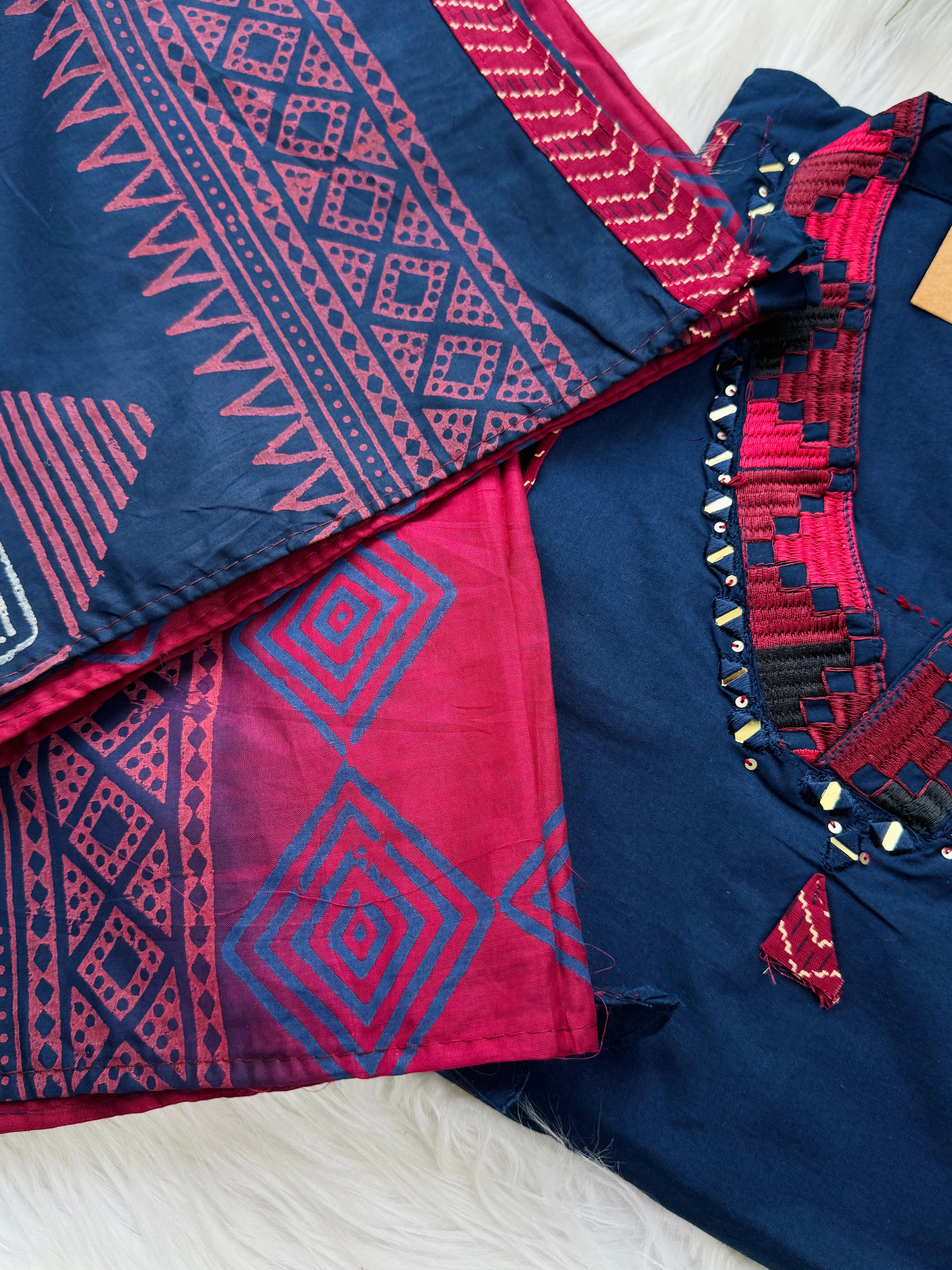 Pure Cotton Embroidered Mirror Work Kurti Set