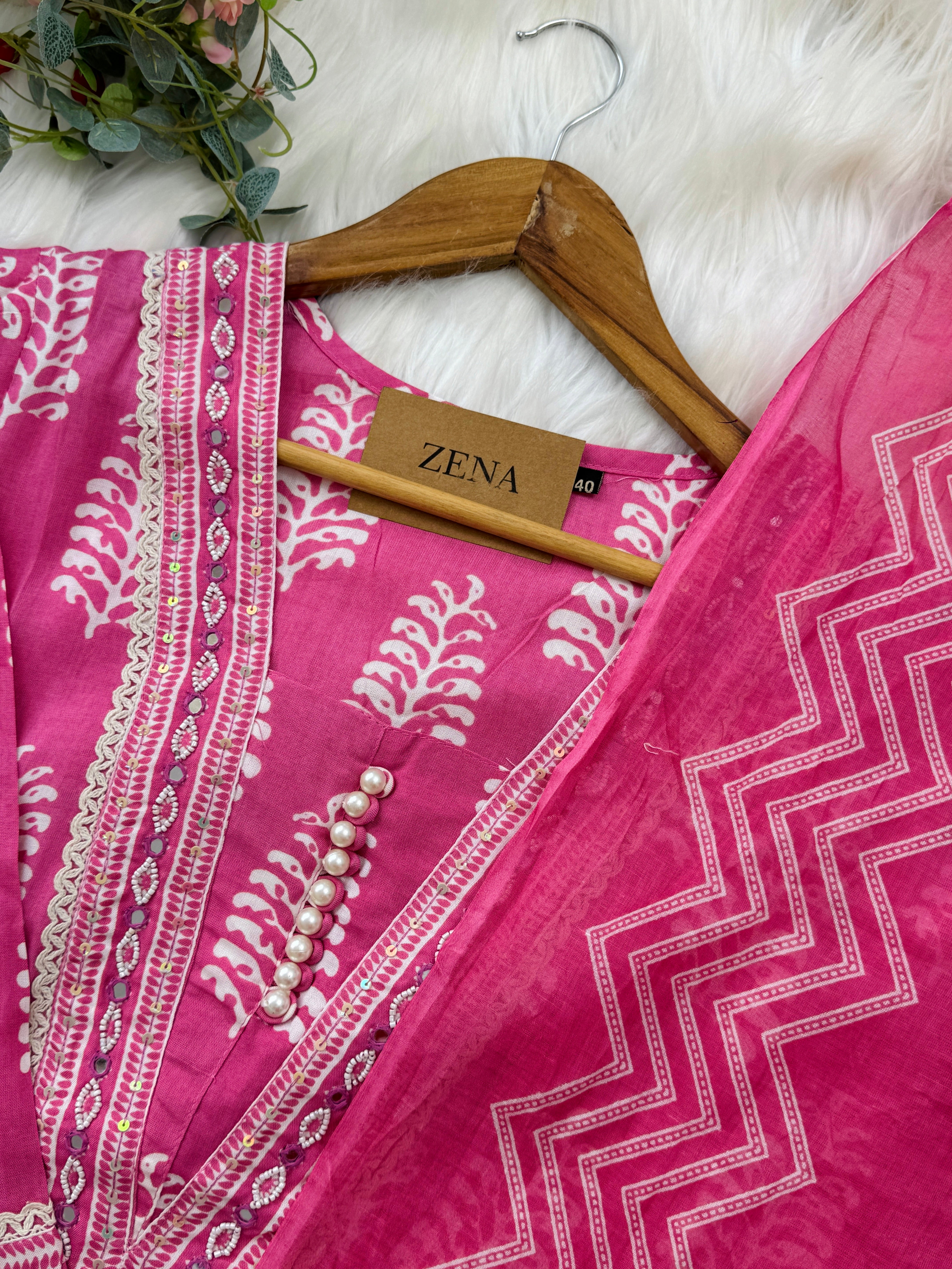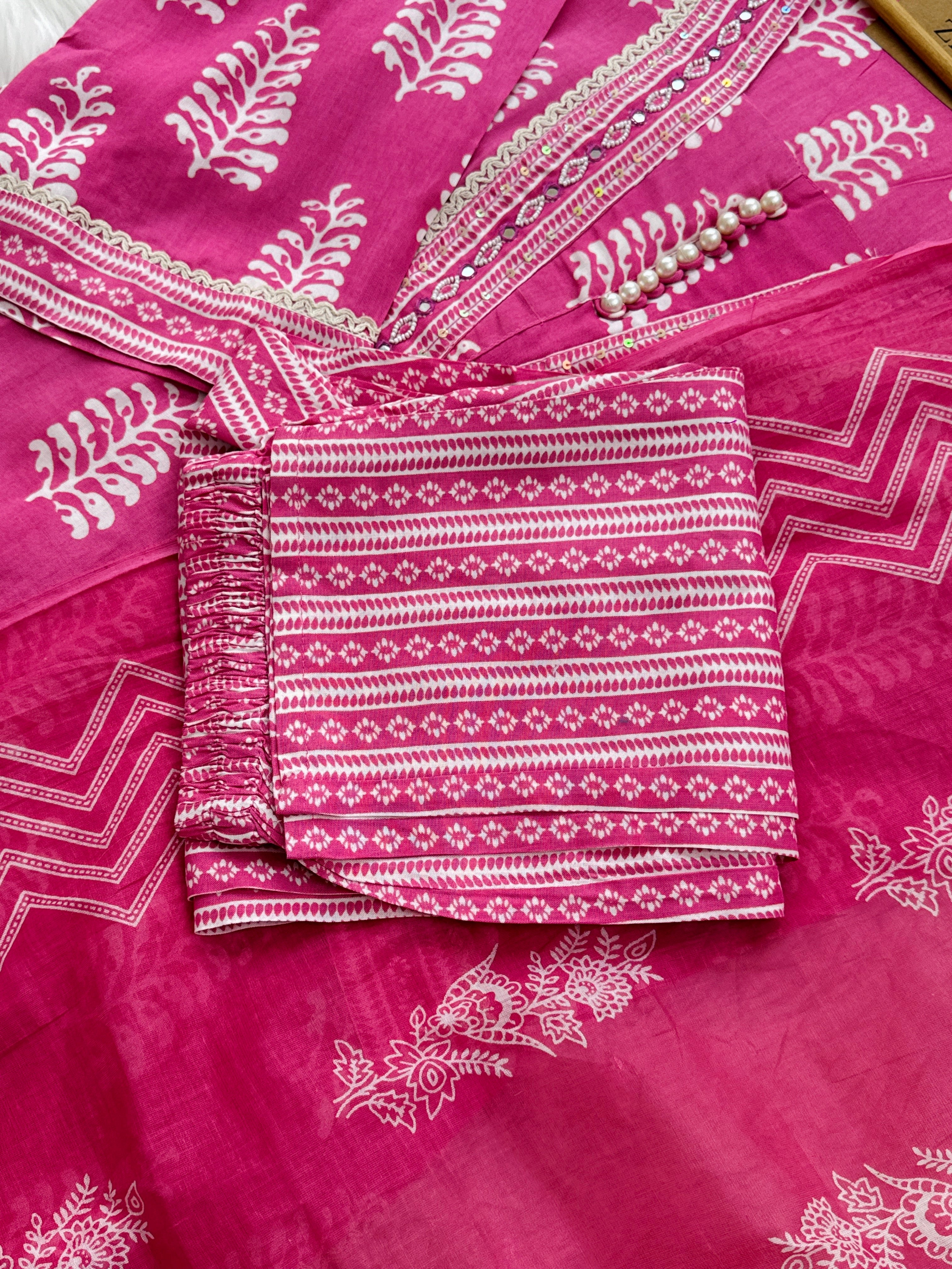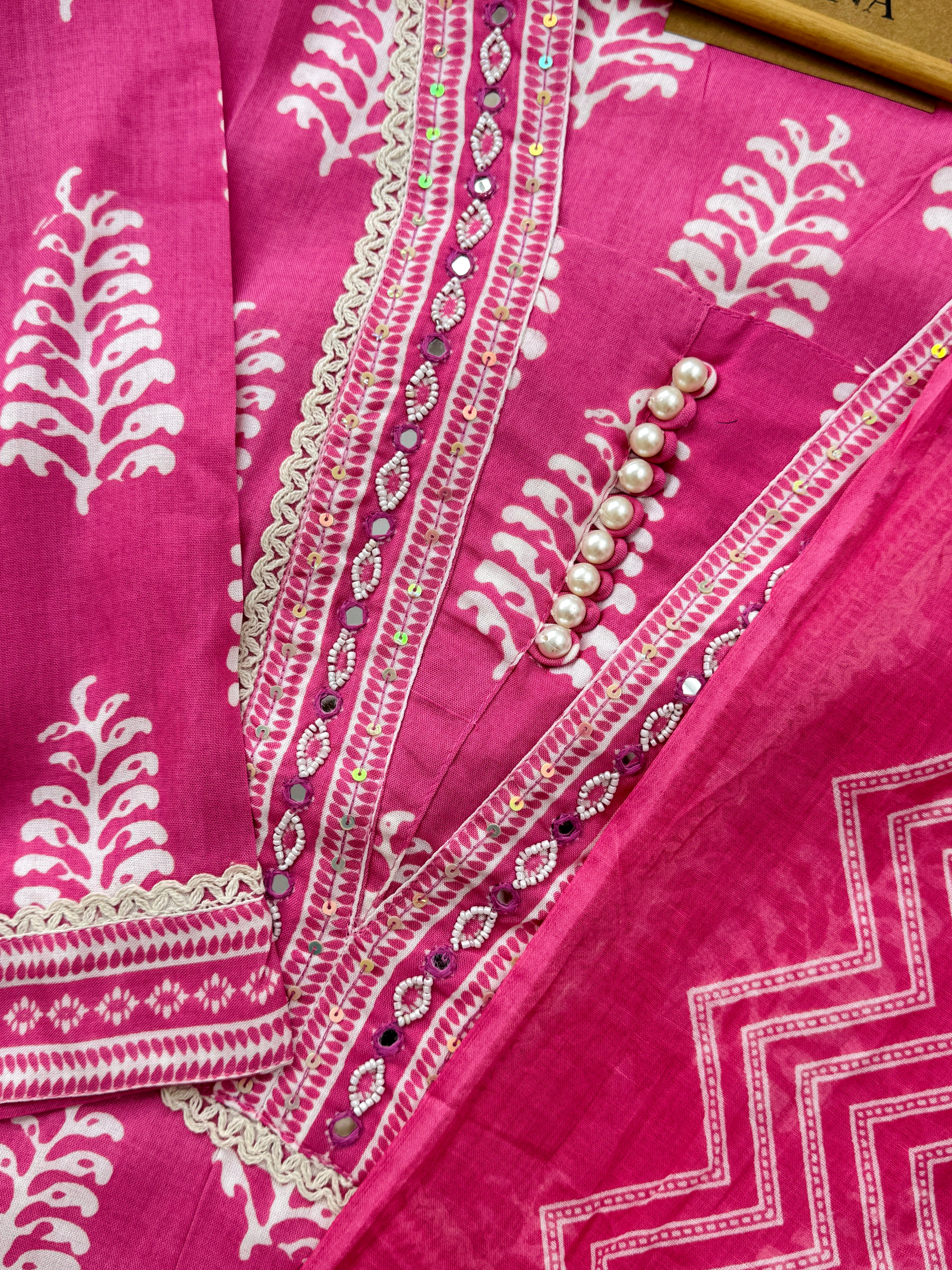 Pure Cotton Hand Detailed Slitted Kurti Set – Comfortable & Stylish 🌿
