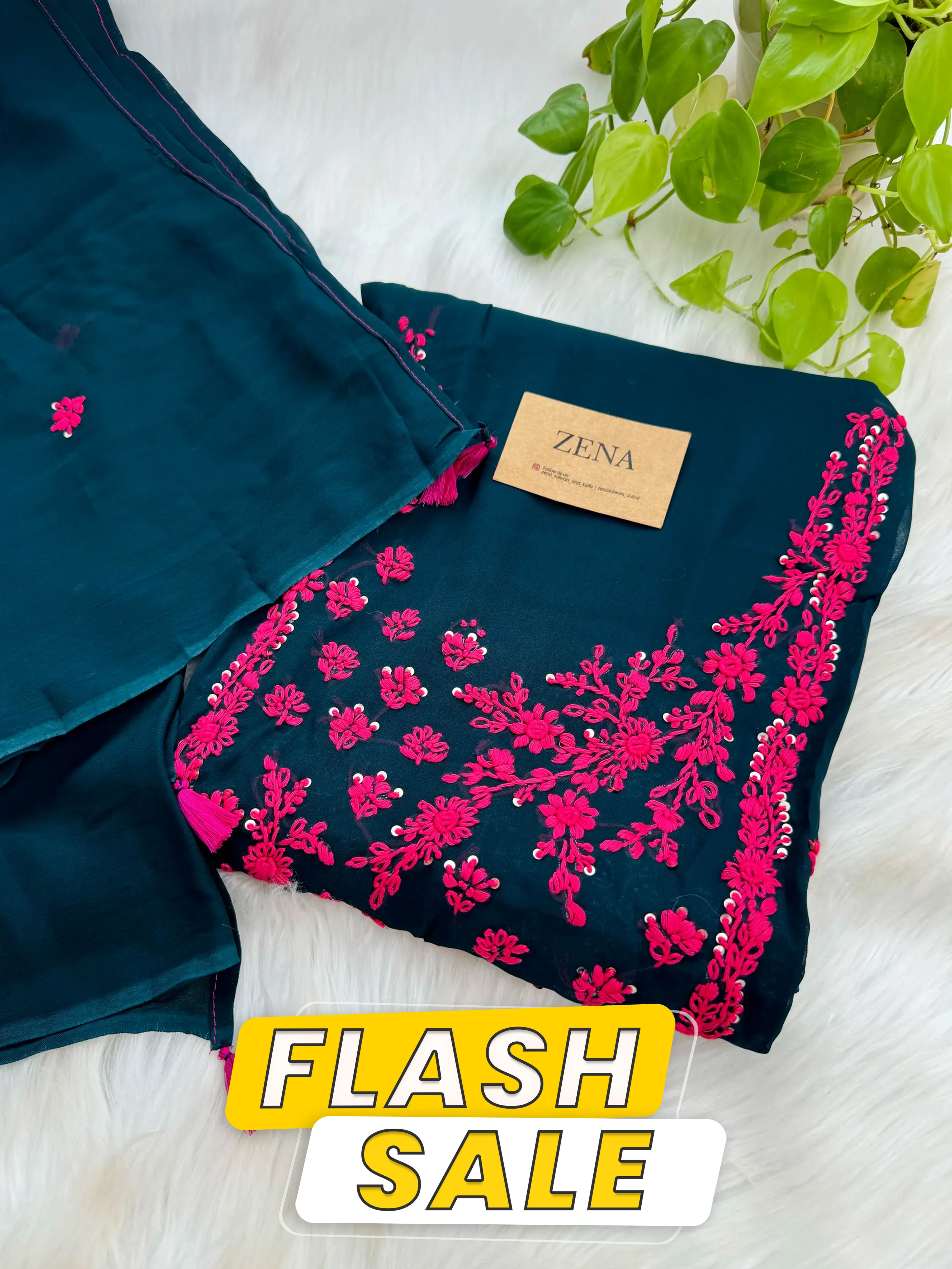 Create your dream outfit with our Pure Georgette Thread Work Unstitched Suit — a canvas of elegance ready to be tailored to your perfect fit. Featuring delicate thread embroidery on premium georgette fabric, this ensemble is ideal for festive functions, parties, or elegant evening wear. Let your style speak with timeless grace and custom flair.