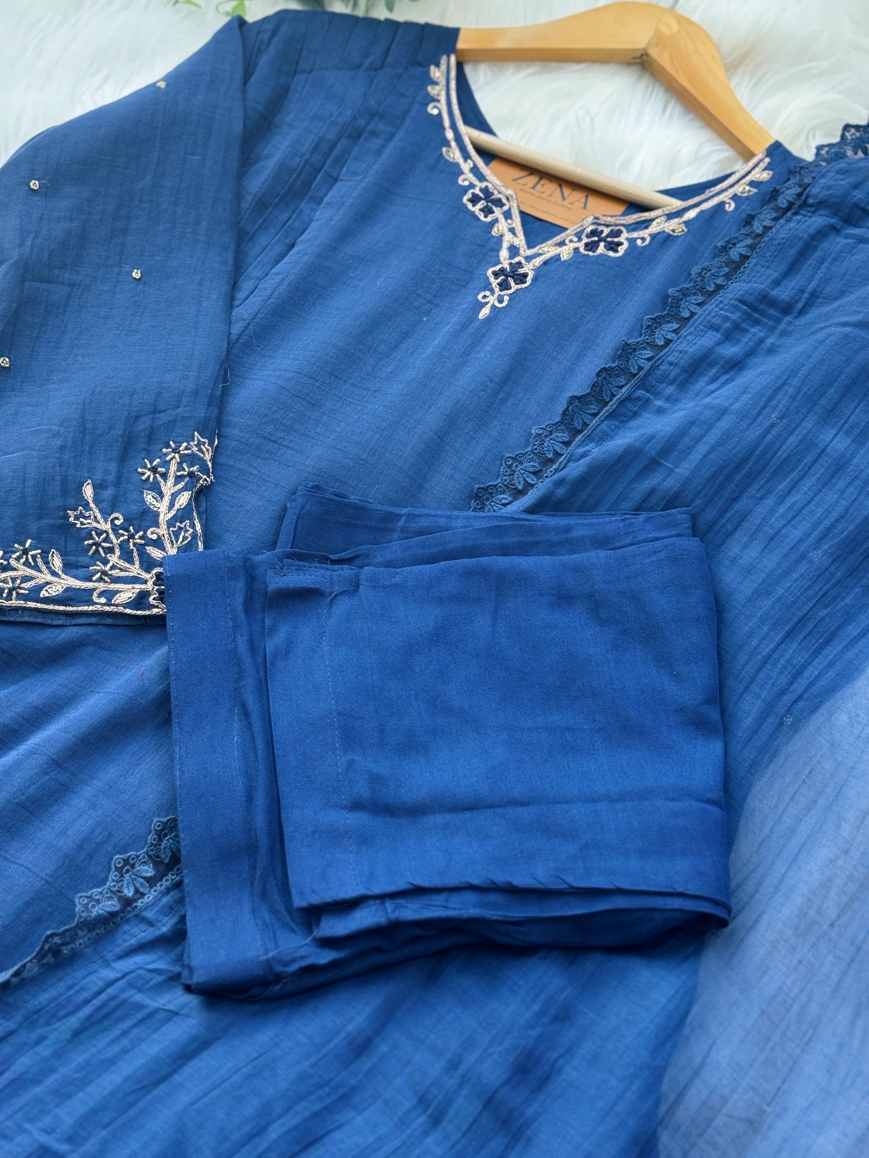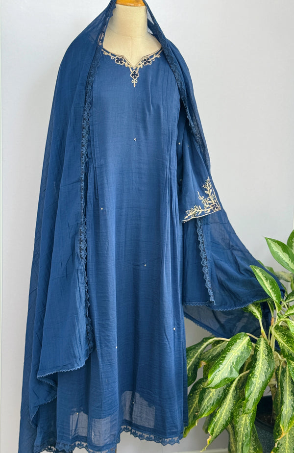 - Mul Chanderi silk / Blue / M - ₹3,300.00