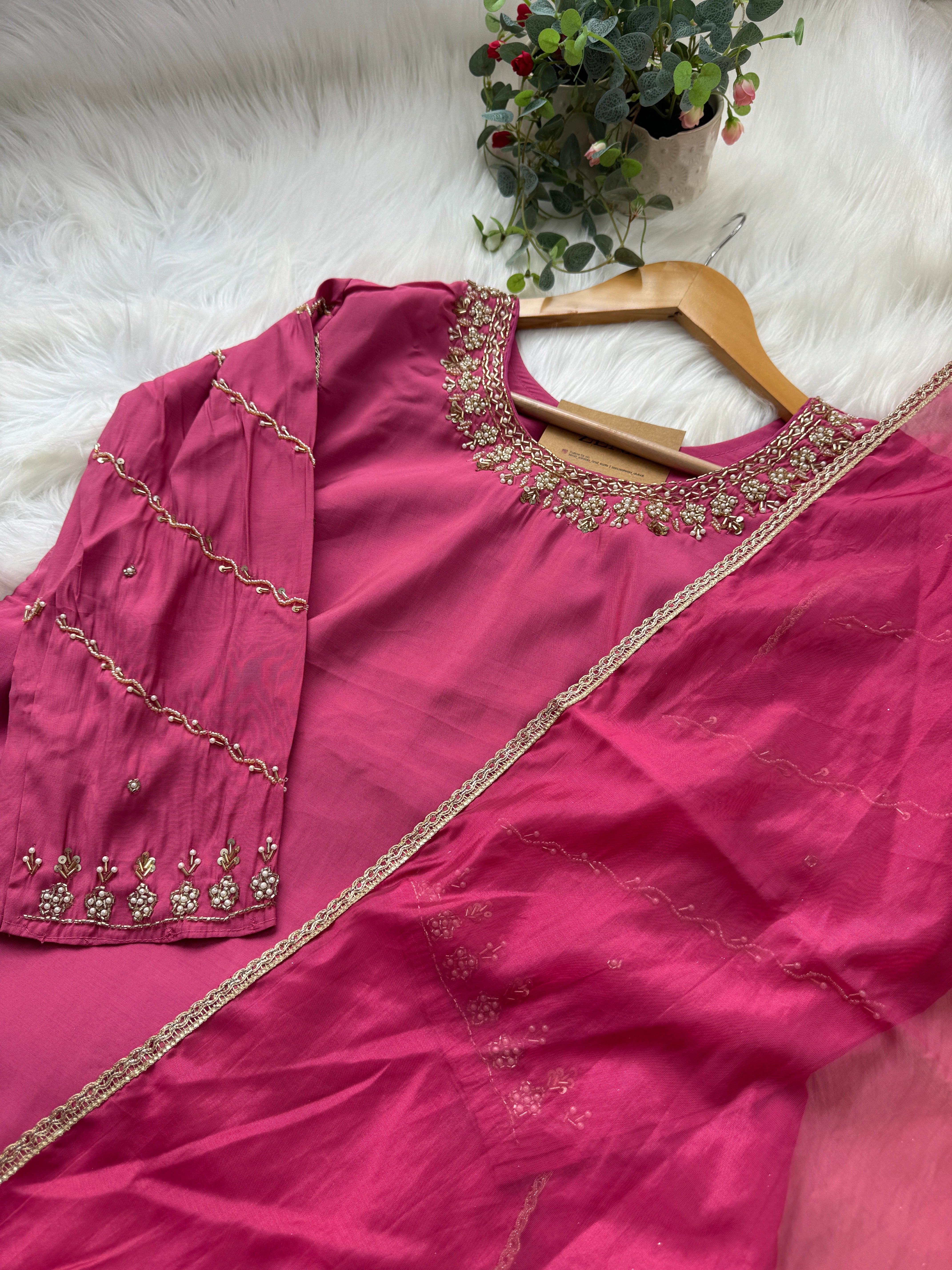Roman Silk Hand Work A-Line Kurti Set – Elegant Partywear