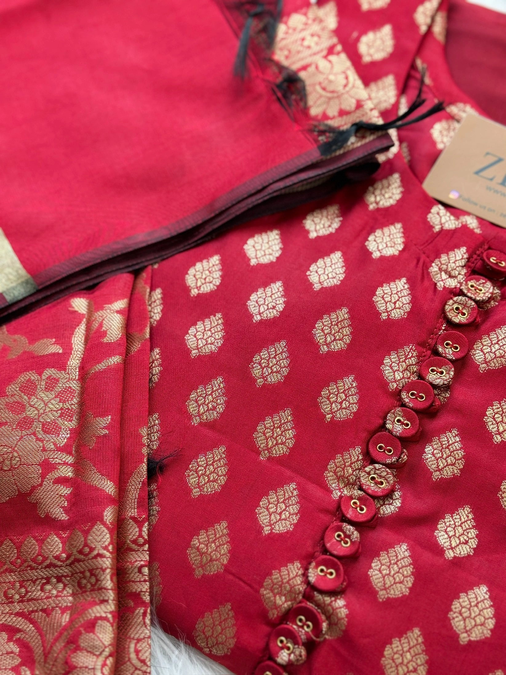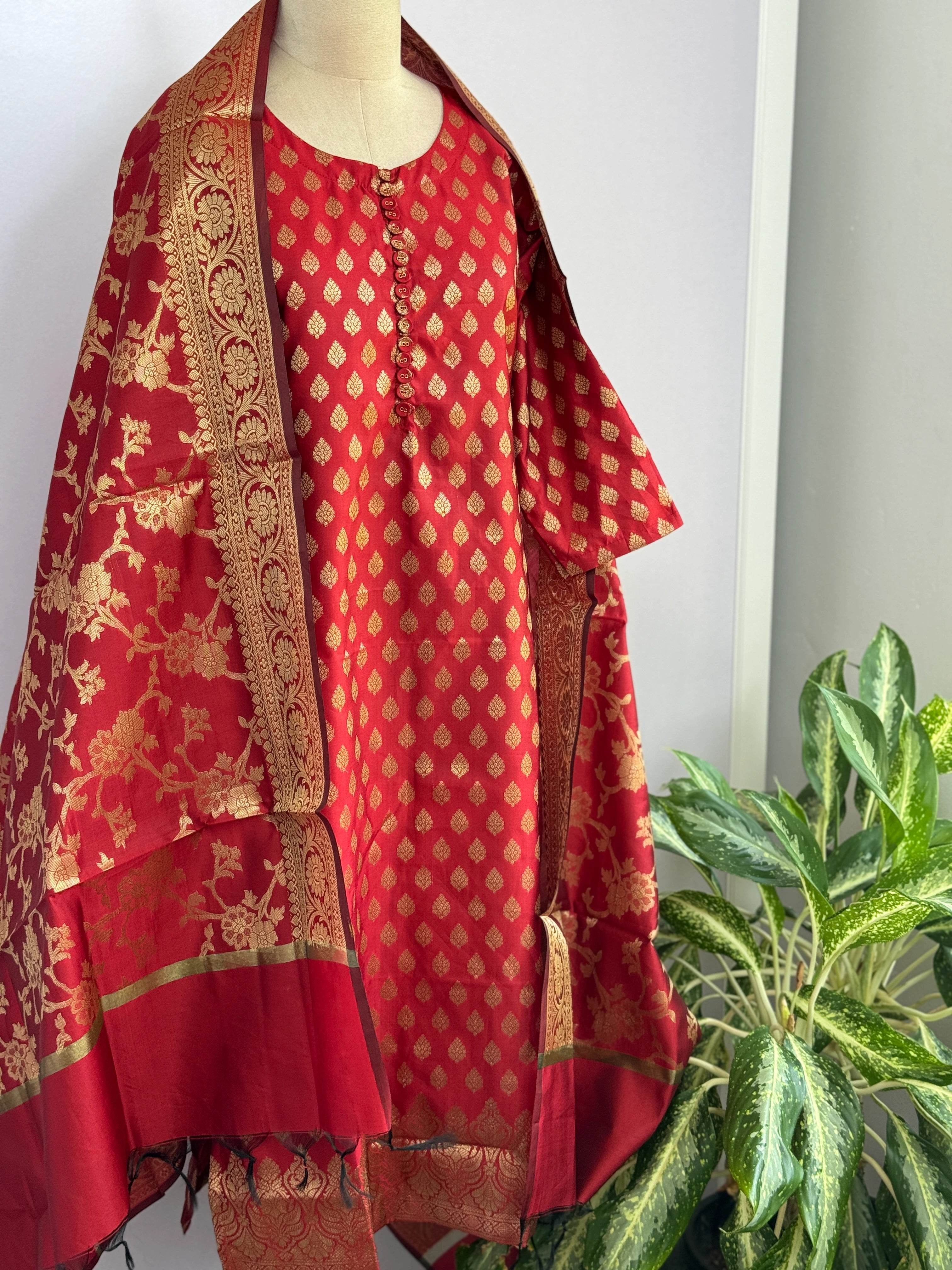 Semi Silk Banarasi Work Kurti Set – Elegant Festive Wear