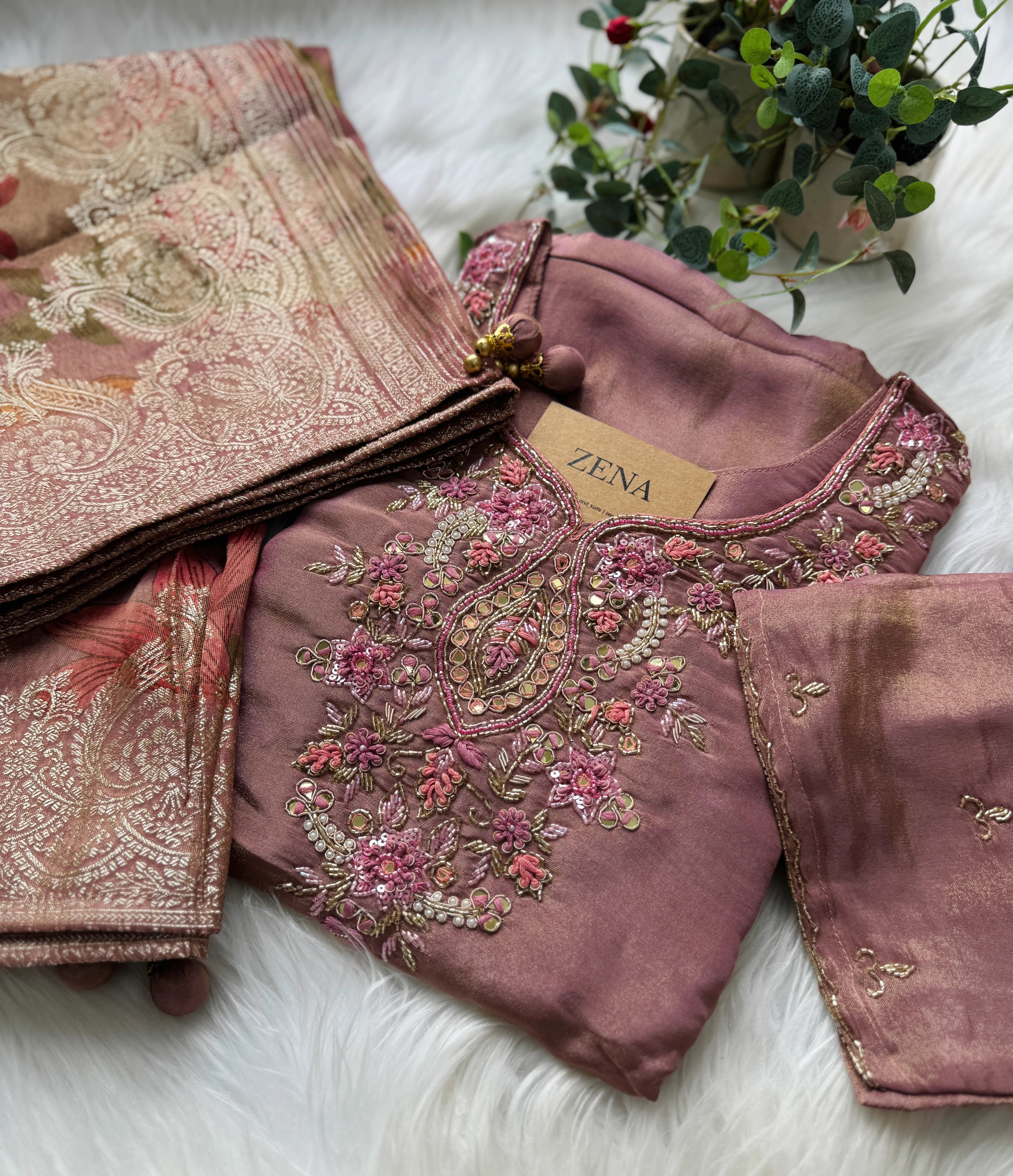 Tissue Silk Hand Detailed Kurti Set with Organza Dupatta